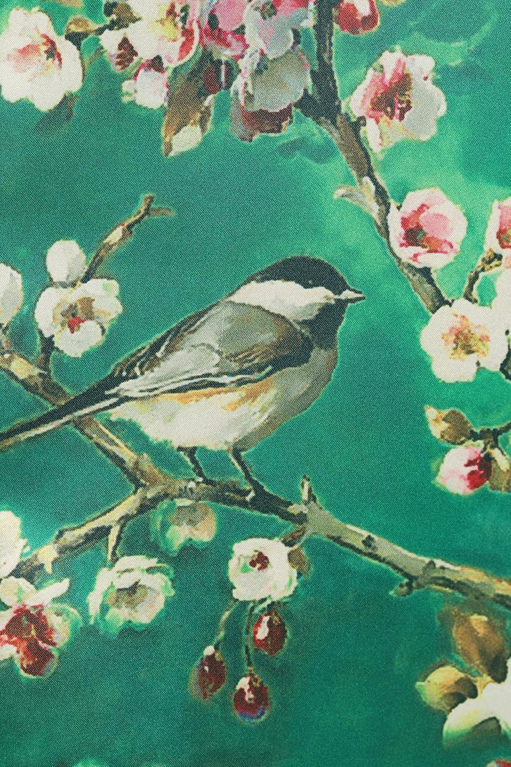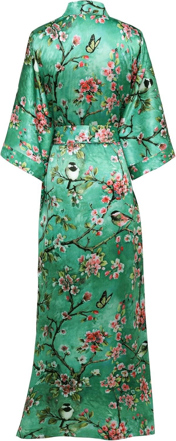 BABEYOND Floral Kimono Robe Satin Silky Wedding Robe Lightweight Long Kimono Nightgown Sleepwear(Malachite Green)