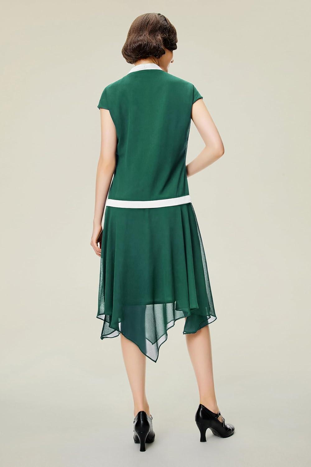 BABEYOND Gatsby Dress for Women – Chiffon Flapper Dress Low-Waist 1920s Roaring 20s Great Gatsby Party(Green)