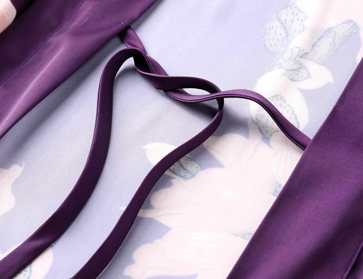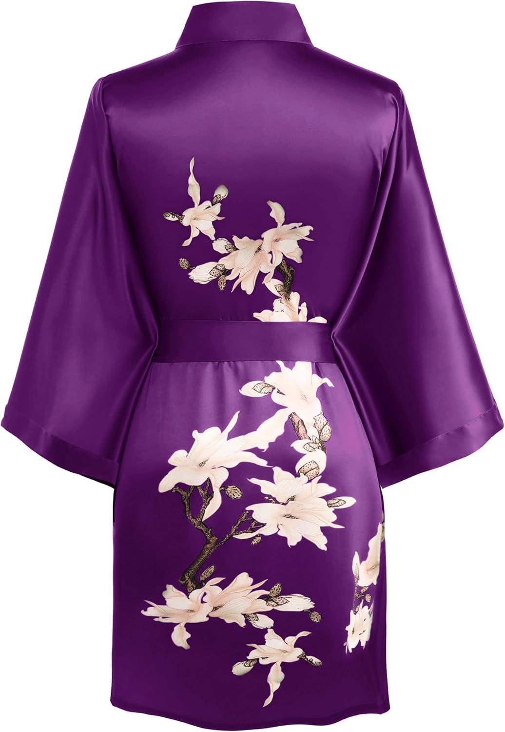 BABEYOND Kimono Robe Cover up Short Satin Floral Silky Kimono Blouse Loose Bachelorette Party Robe(Deep Purple)