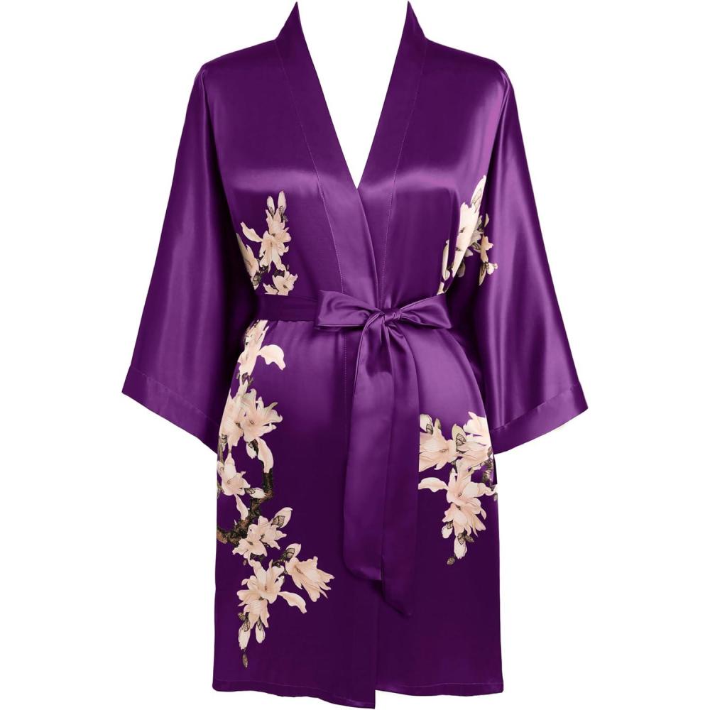 imageBABEYOND Kimono Robe Cover up Short Satin Floral Silky Kimono Blouse Loose Bachelorette Party RobeDeep Purple