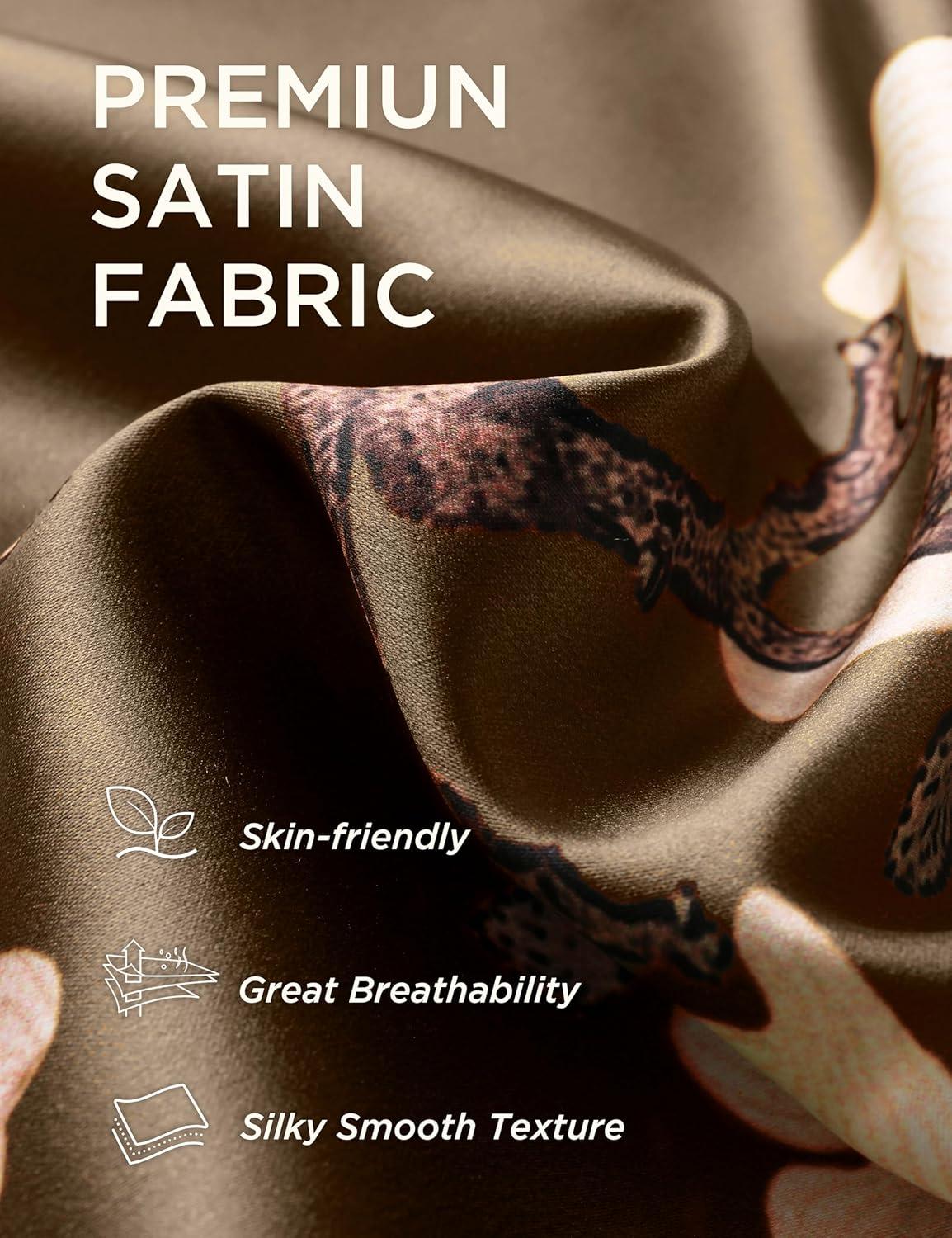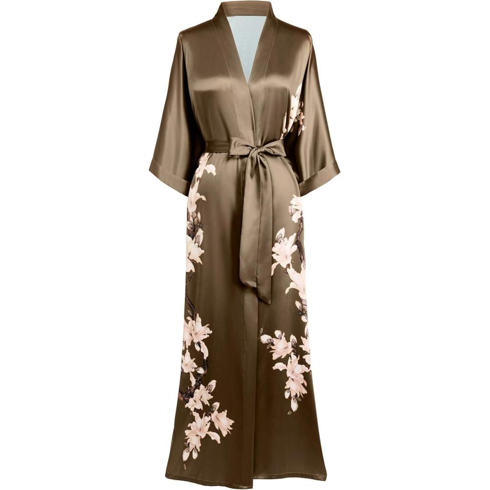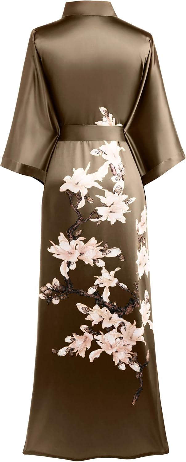 BABEYOND Kimono Robe Cover up with Box Long Floral Satin Sleepwear Silky Bathrobe Bachelorette Robe(Coffee)