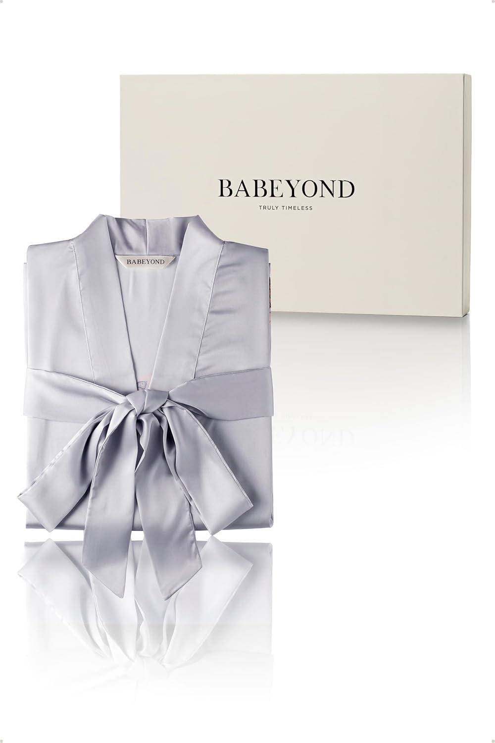 imageBABEYOND Kimono Robe Cover up with Box Long Floral Satin Sleepwear Silky Bathrobe Bachelorette RobeGray