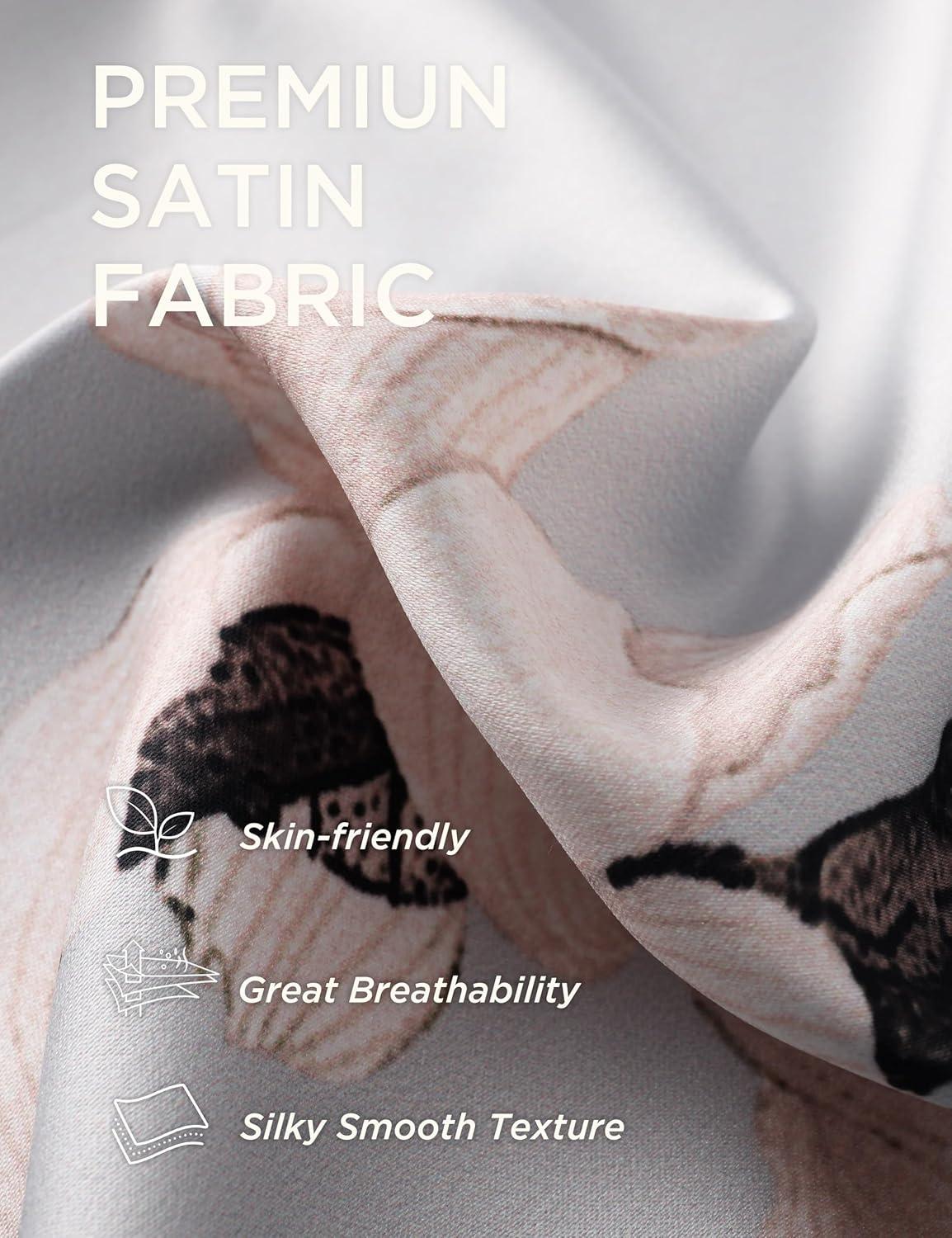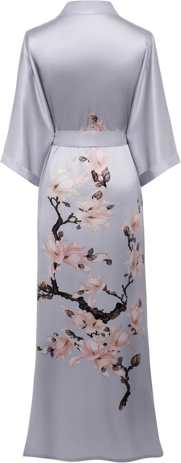 BABEYOND Kimono Robe Cover up with Box Long Floral Satin Sleepwear Silky Bathrobe Bachelorette Robe(Gray)