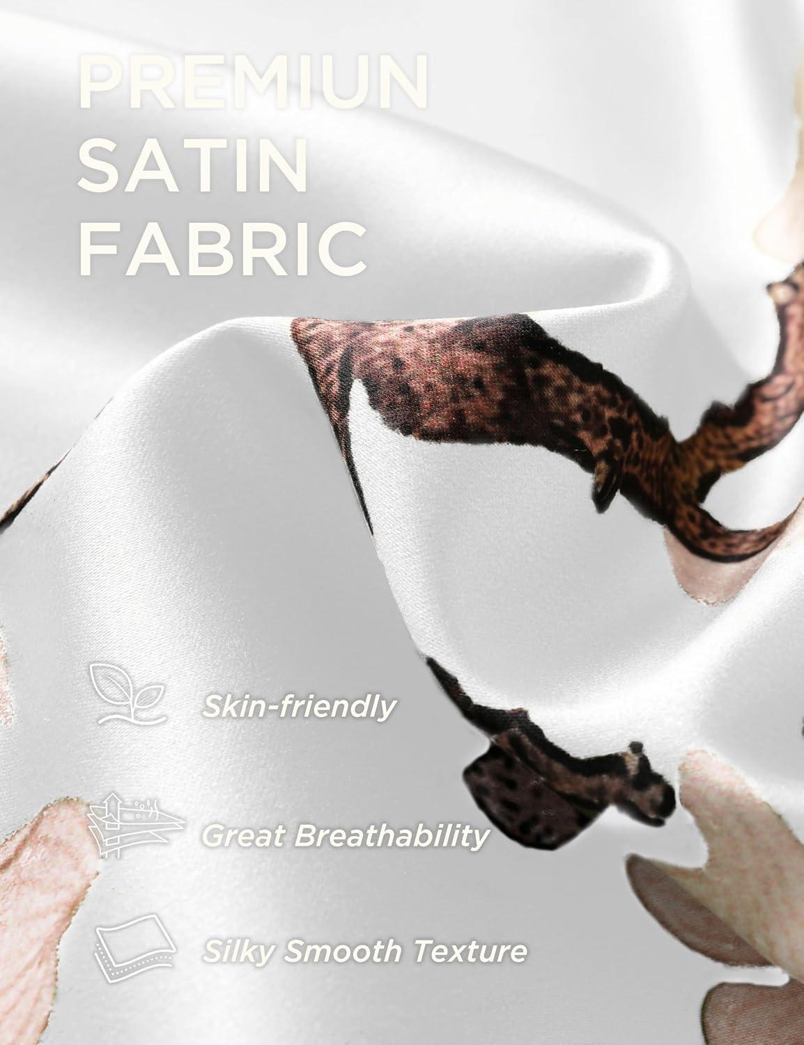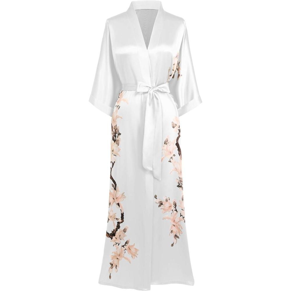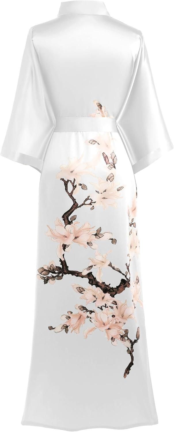 BABEYOND Kimono Robe Cover up with Box Long Floral Satin Sleepwear Silky Bathrobe Bachelorette Robe(Porcelain White)