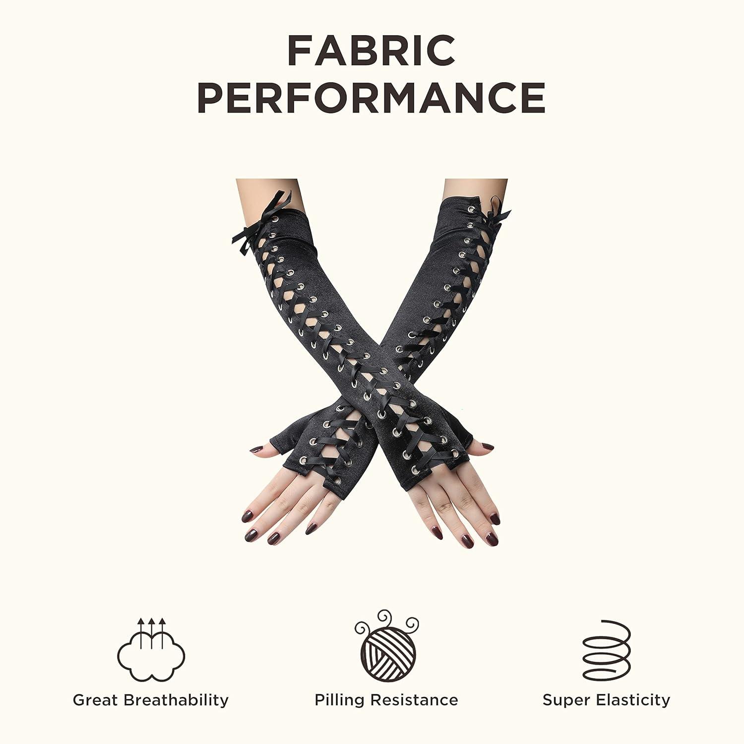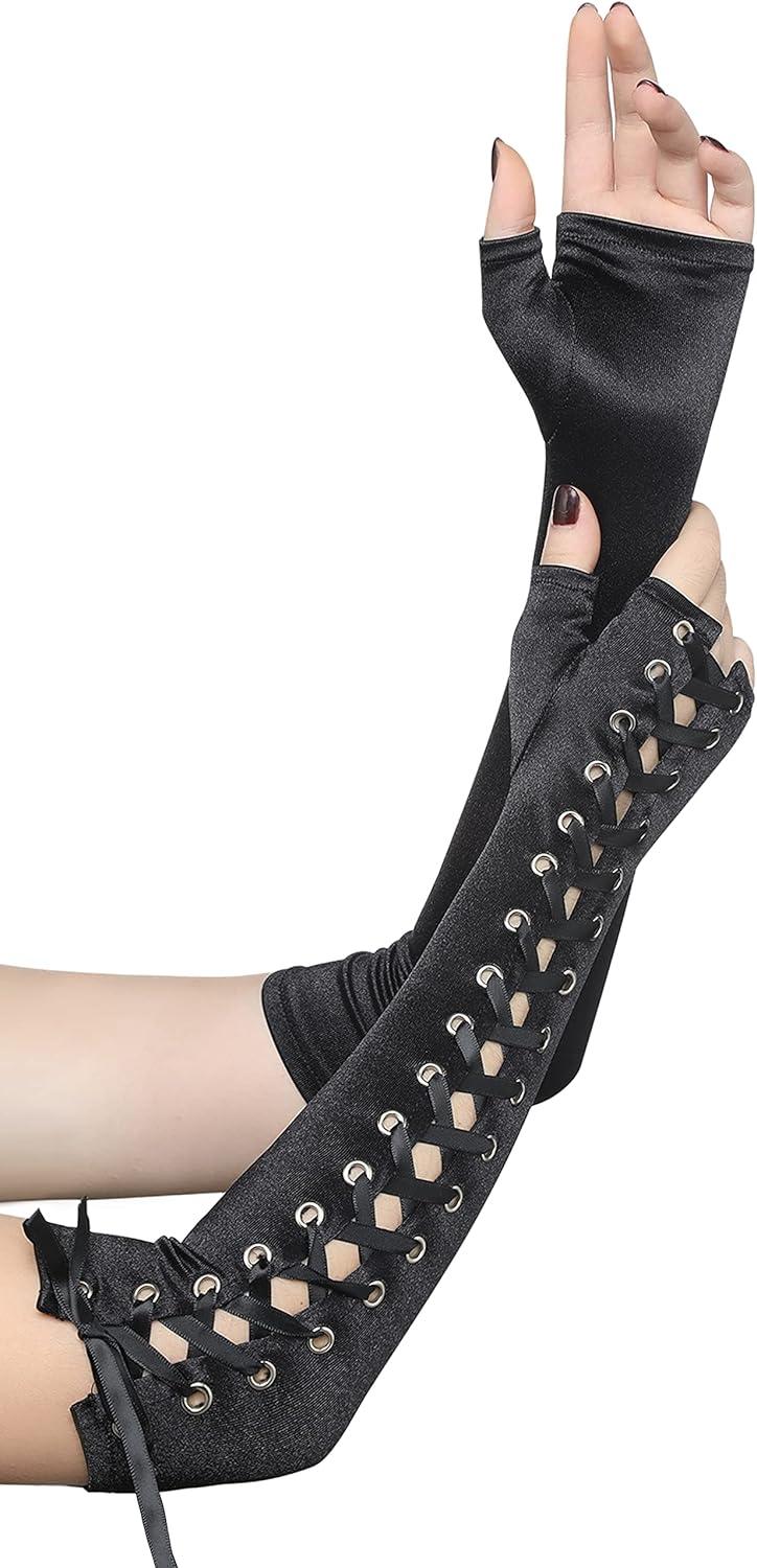 BABEYOND Lace Up Fingerless Gloves Long Elbow Gloves for Costume Party Lace-up Arm Warmer(Z-black)