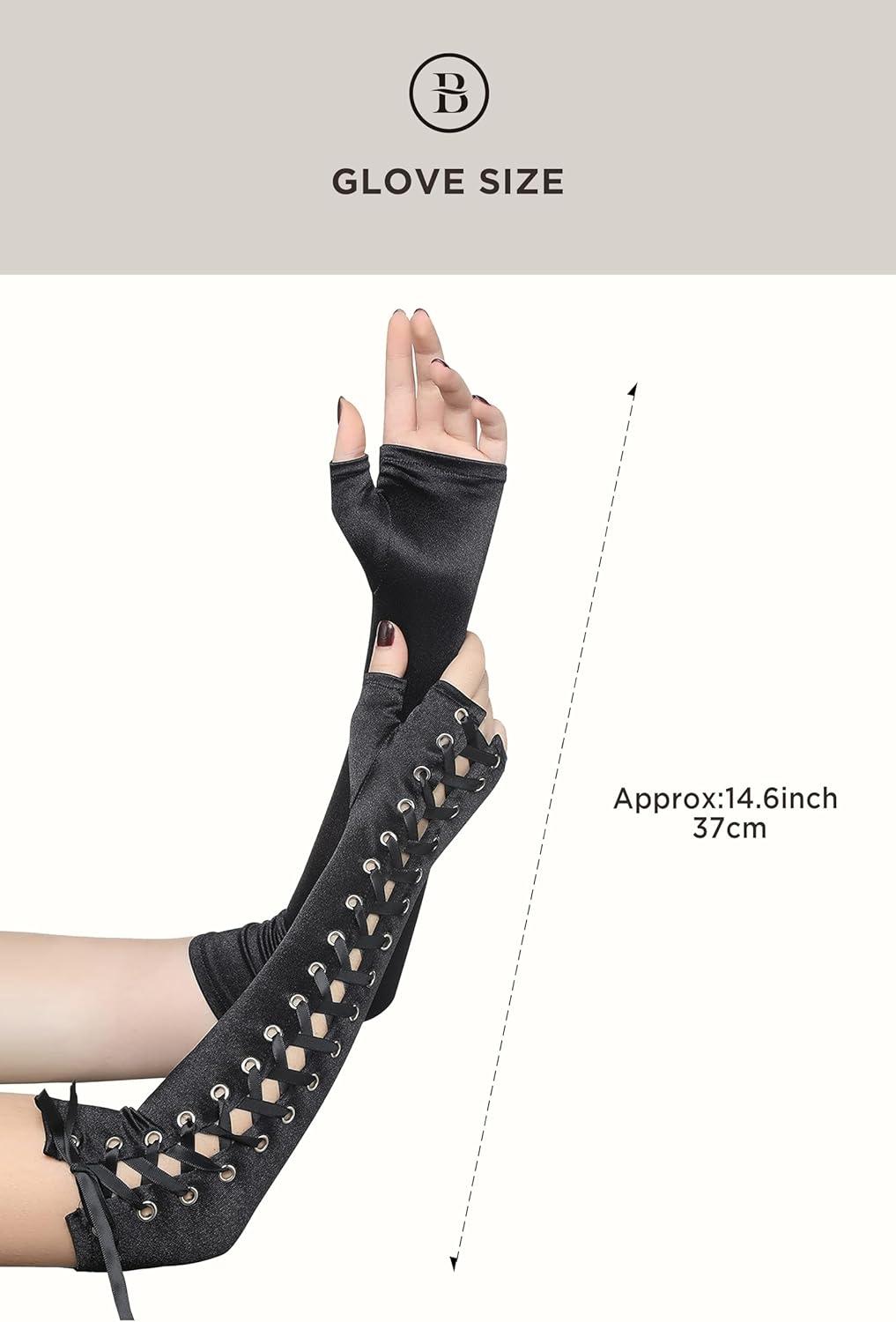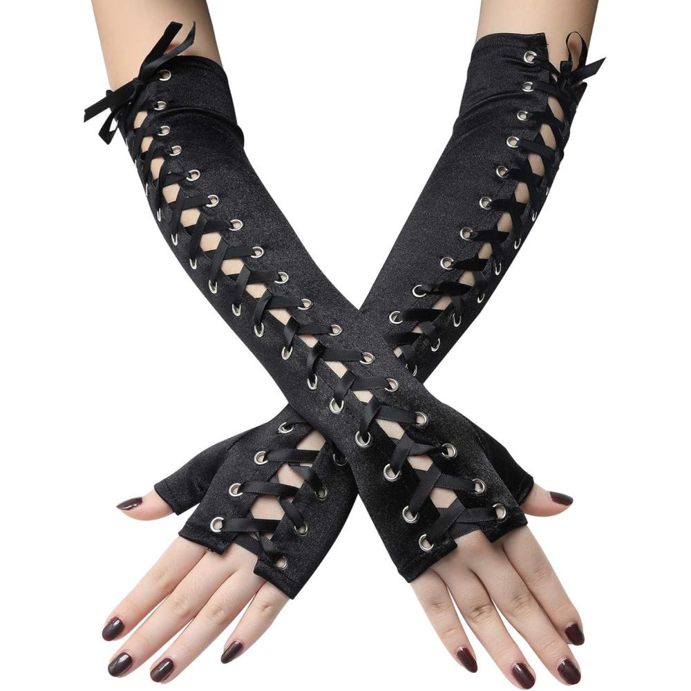 imageBABEYOND Lace Up Fingerless Gloves Long Elbow Gloves for Costume Party Laceup Arm WarmerZblack