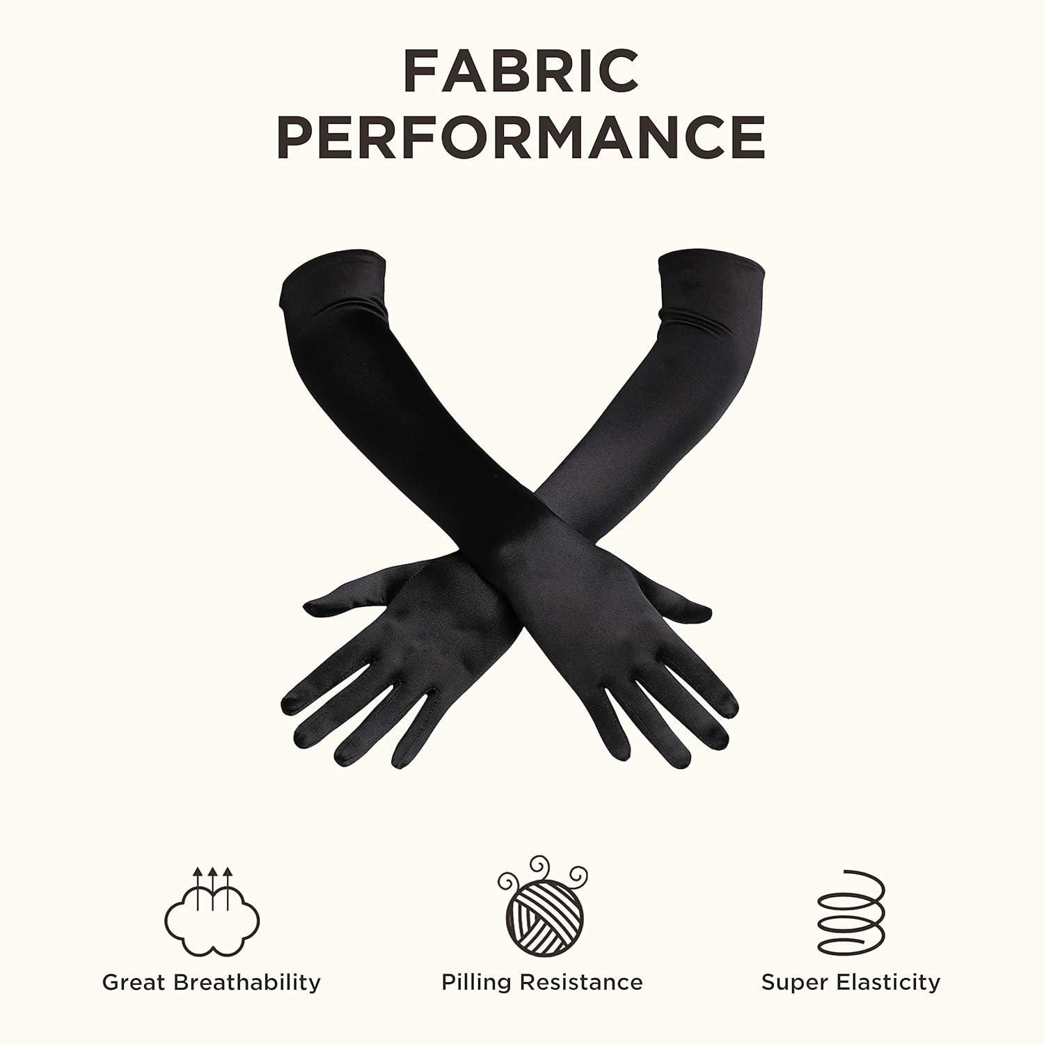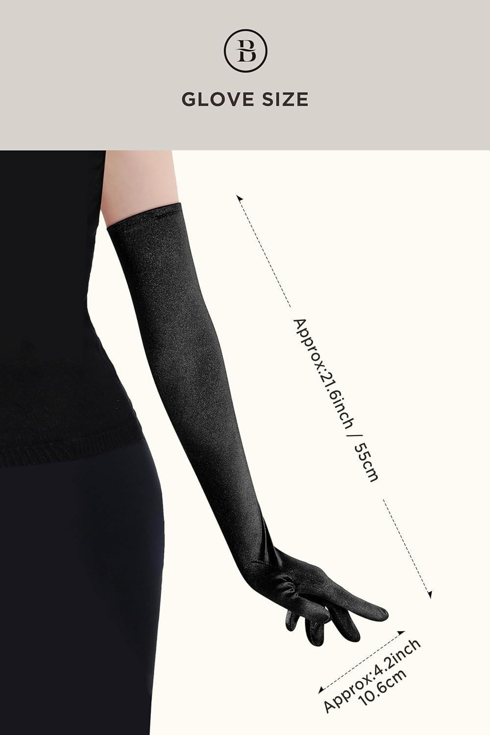 BABEYOND Long Opera Party 1920s Satin Tea Party Gloves Costume Stretchy Adult Size Elbow Length Bridal Gloves(Black)