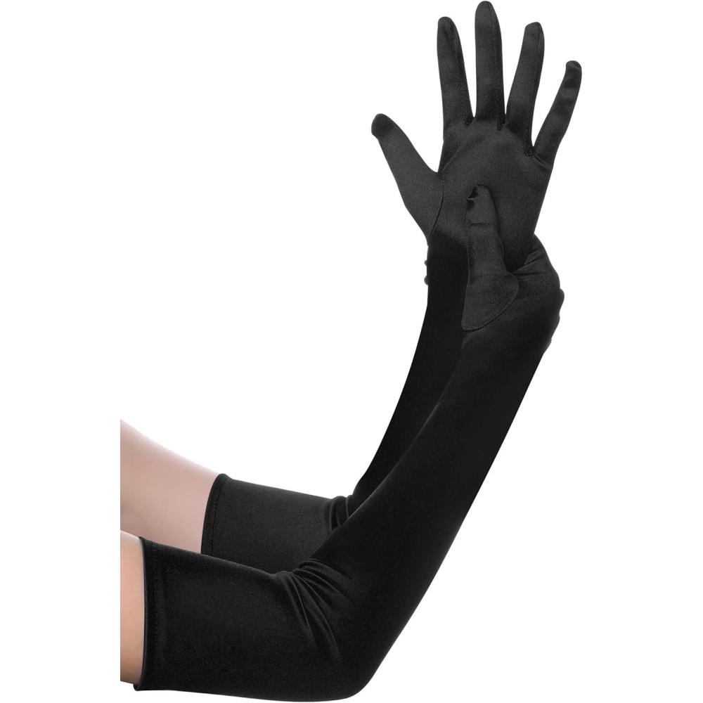 imageBABEYOND Long Opera Party 1920s Satin Tea Party Gloves Costume Stretchy Adult Size Elbow Length Bridal GlovesBlack