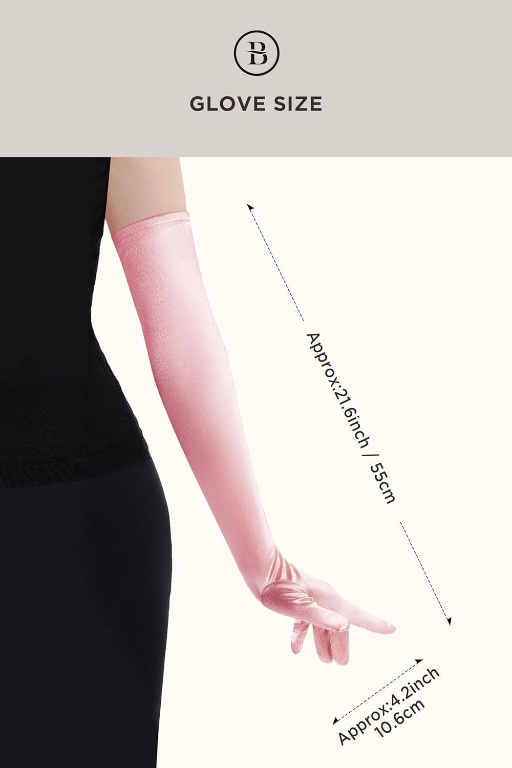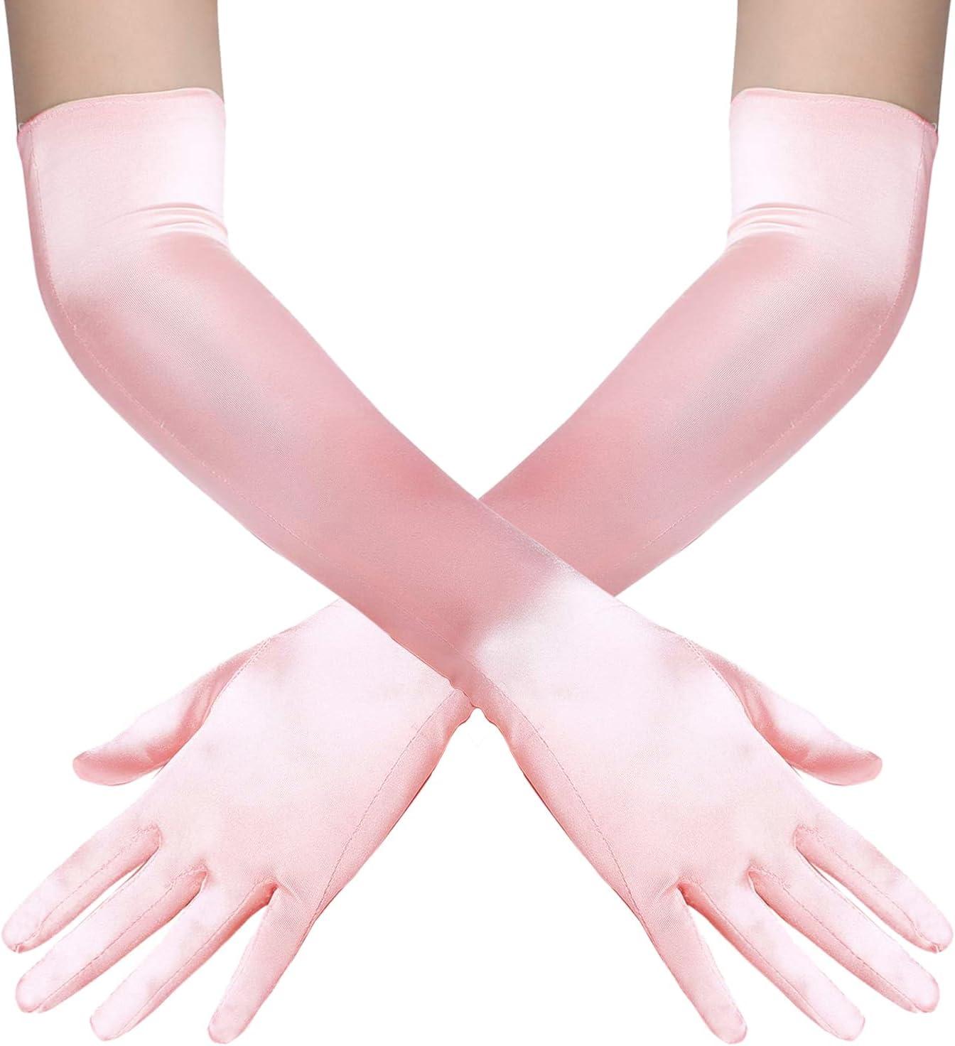 BABEYOND Long Opera Party 1920s Satin Tea Party Gloves Costume Stretchy Adult Size Elbow Length Bridal Gloves(Pink)