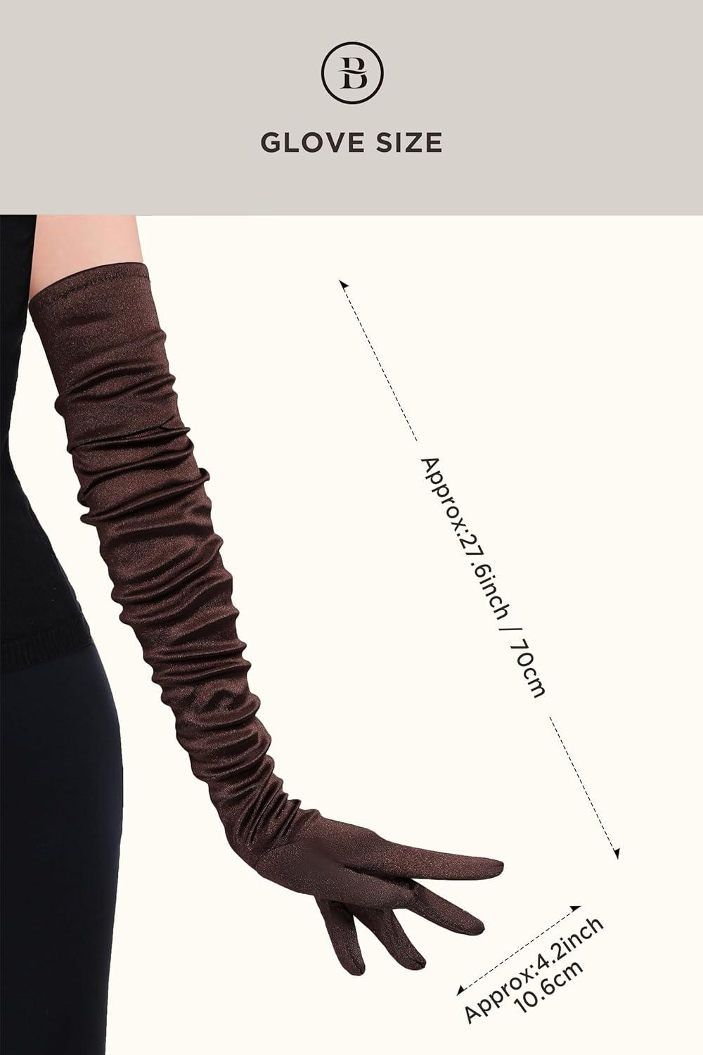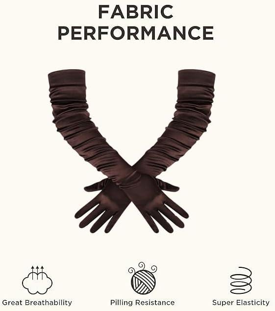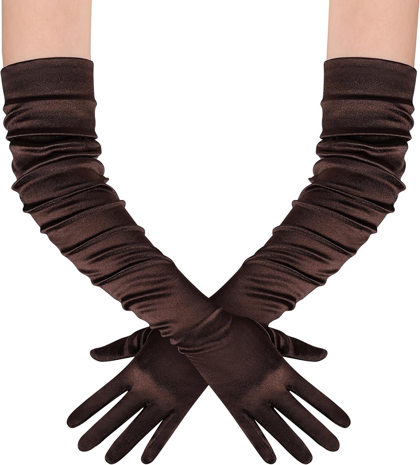 BABEYOND Long Opera Party 1920s Satin Tea Party Gloves Costume Stretchy Adult Size Upper Arm Length 27 “(Brown)