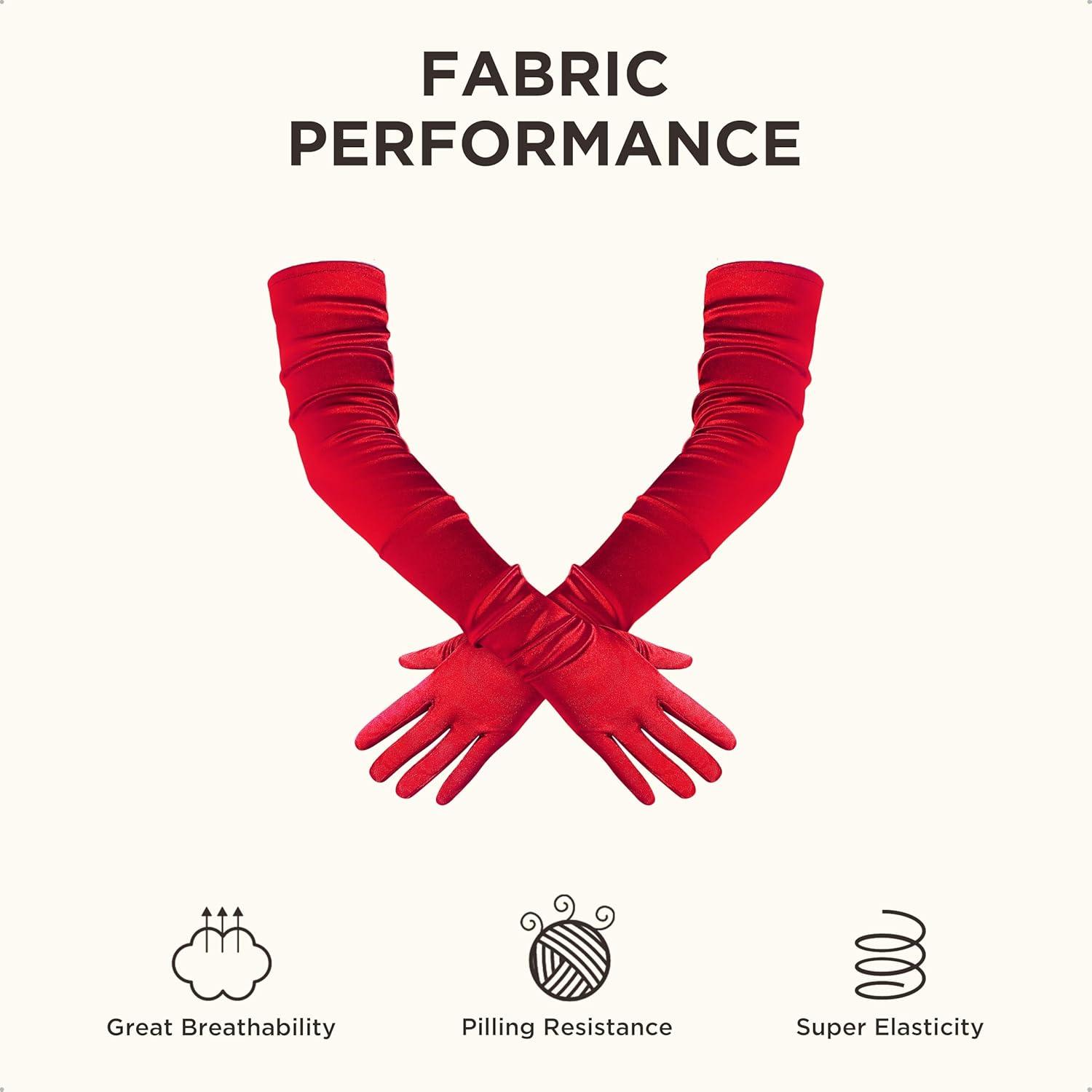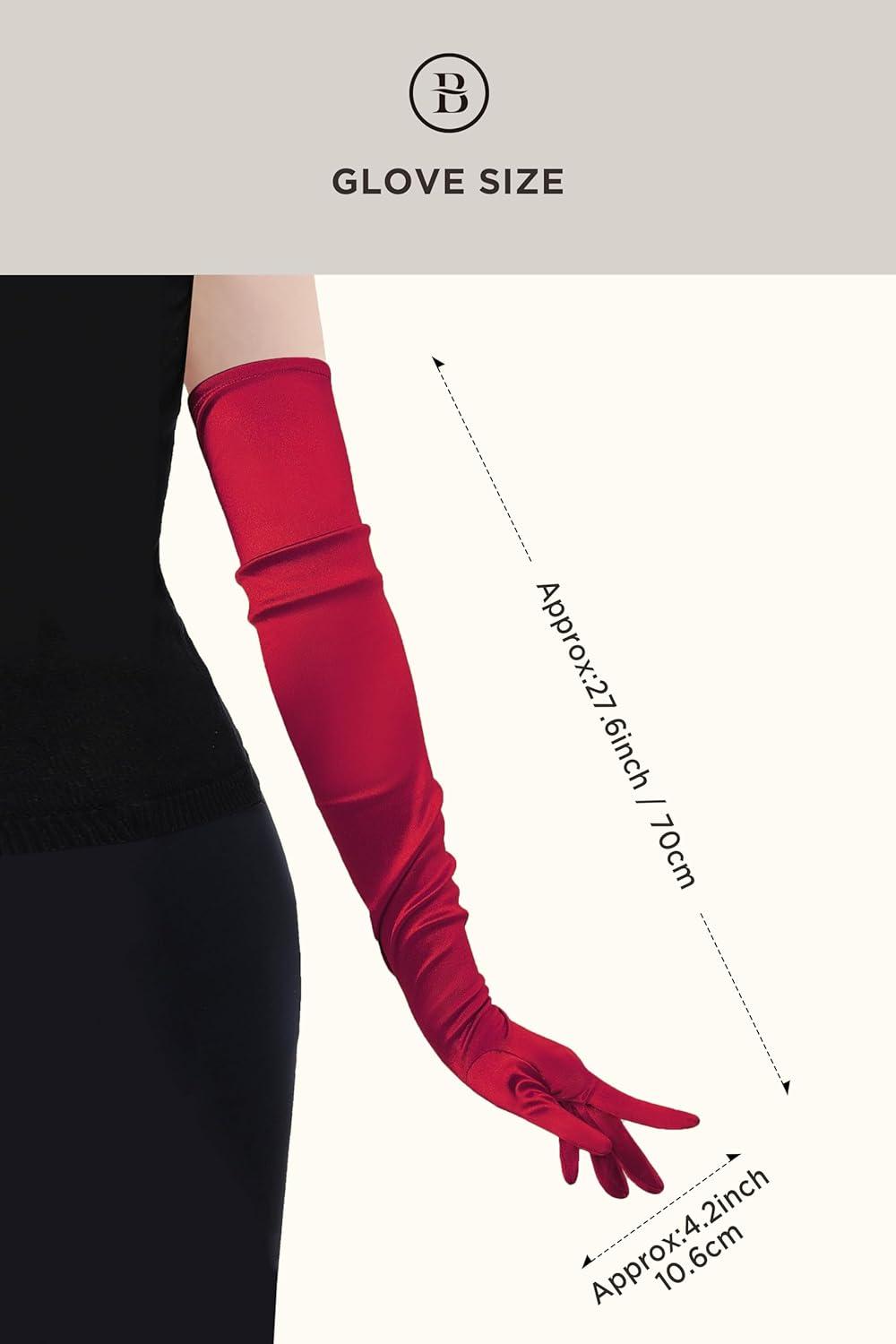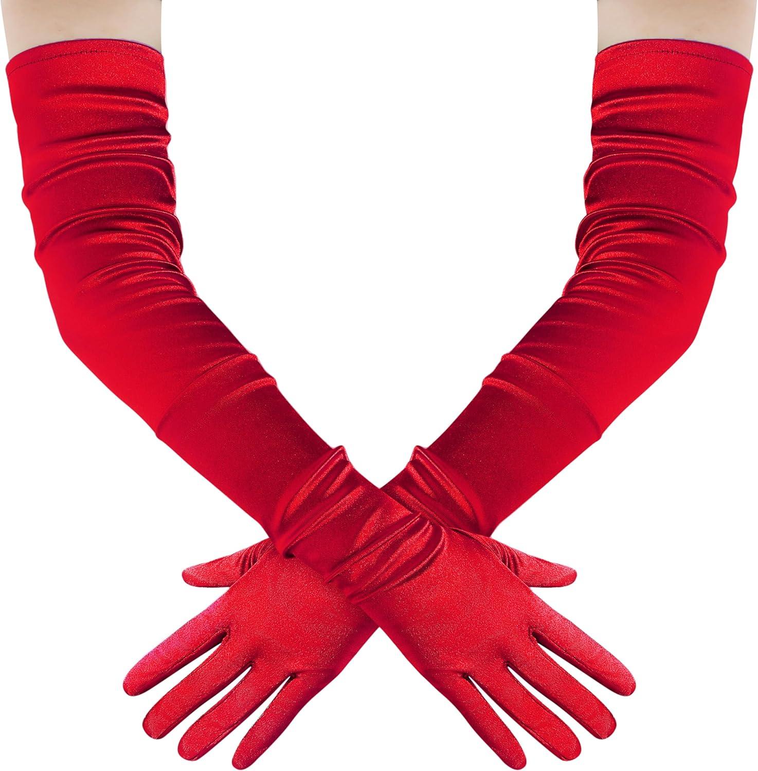 BABEYOND Long Opera Party 1920s Satin Tea Party Gloves Costume Stretchy Adult Size Upper Arm Length 27 “(Red)