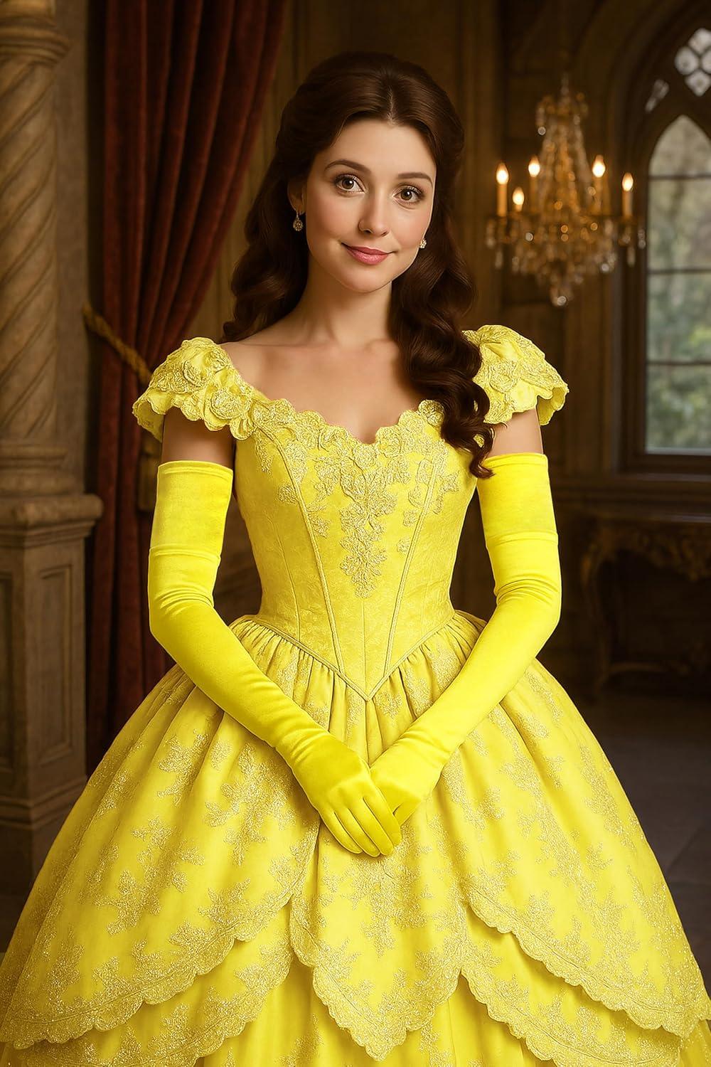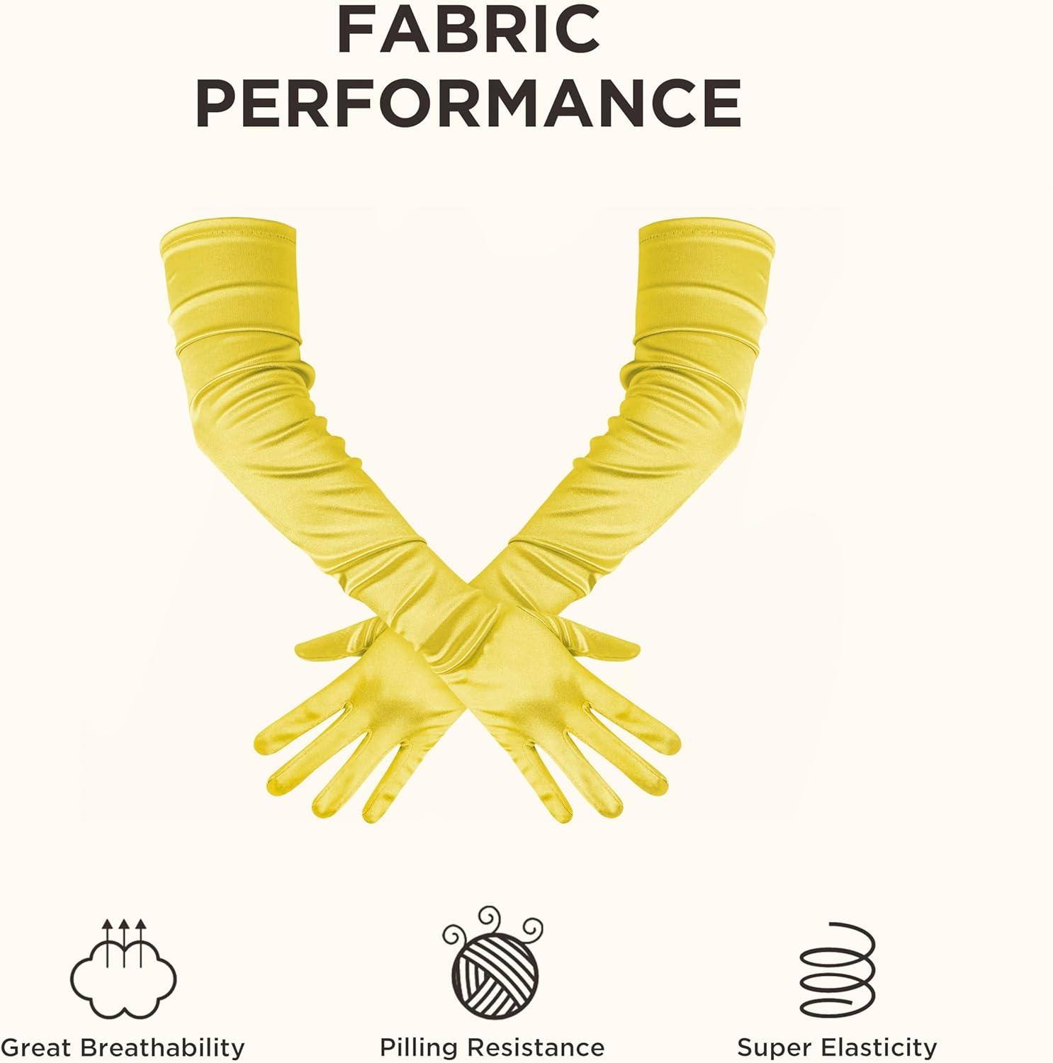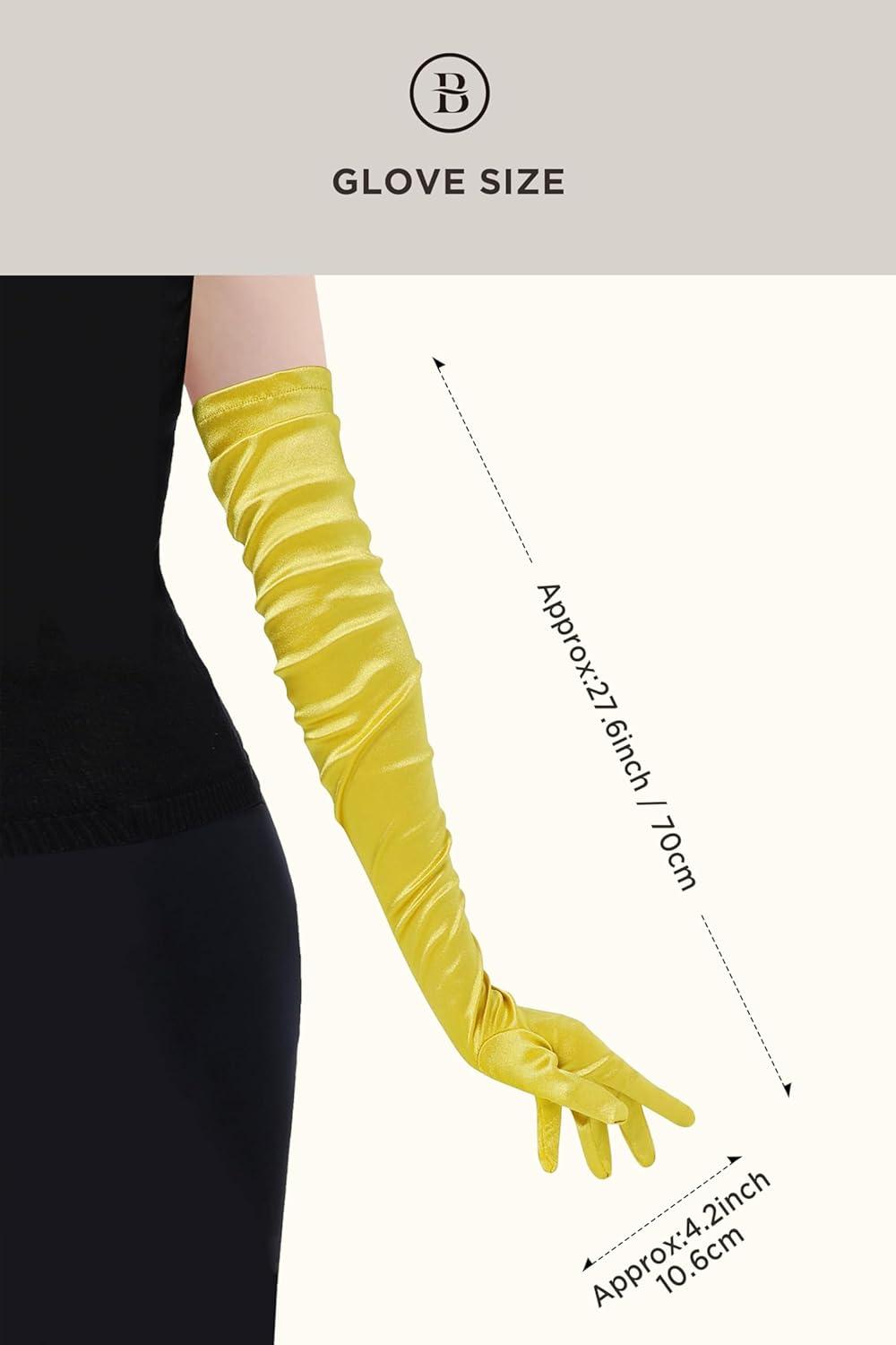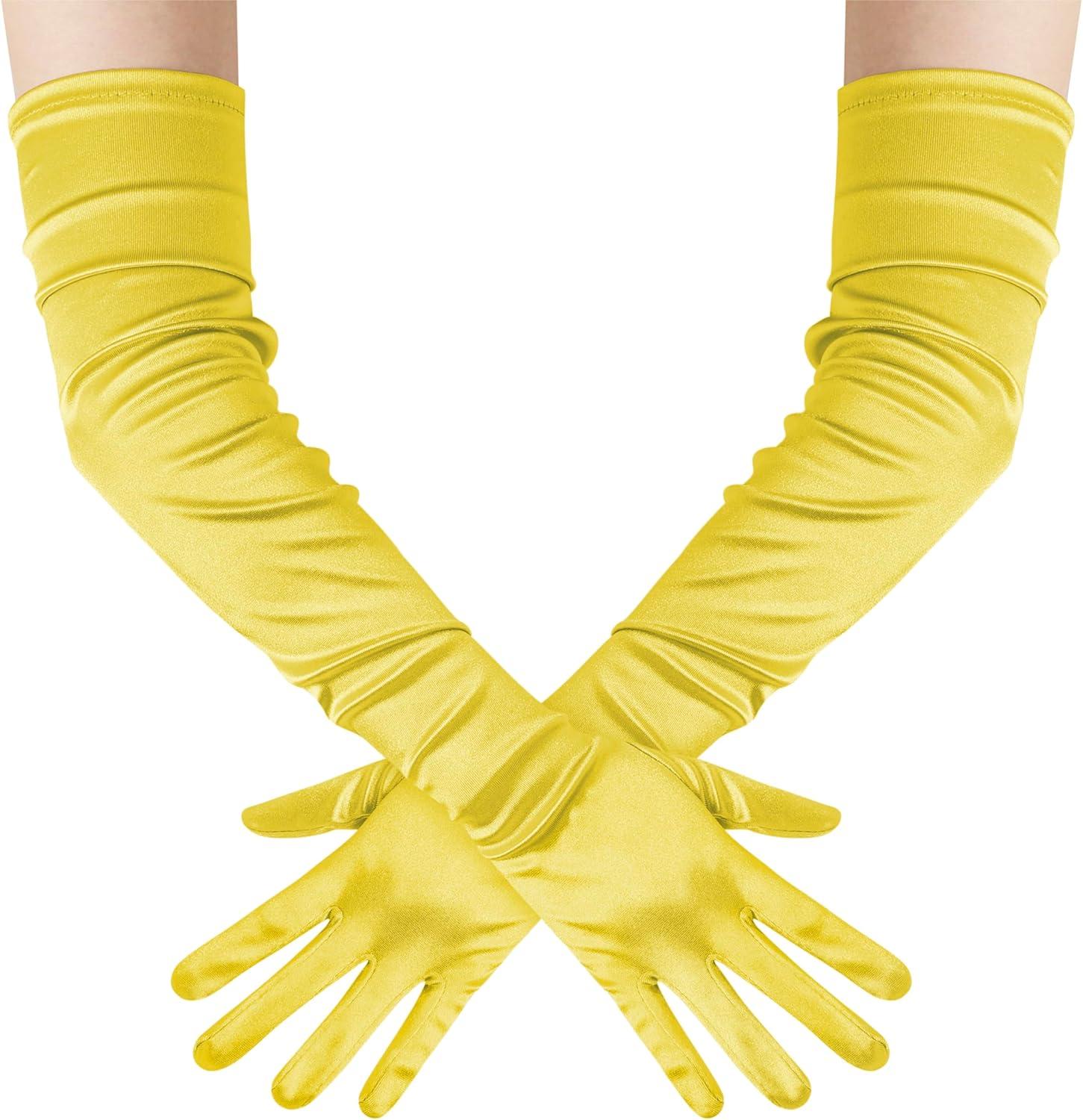 BABEYOND Long Opera Party 1920s Satin Tea Party Gloves Costume Stretchy Adult Size Upper Arm Length 27 “(Yellow)