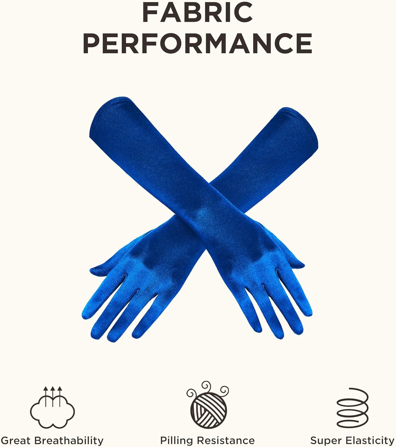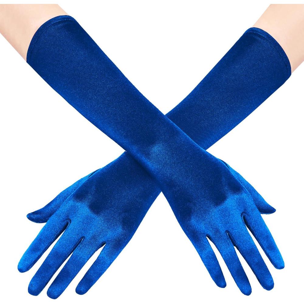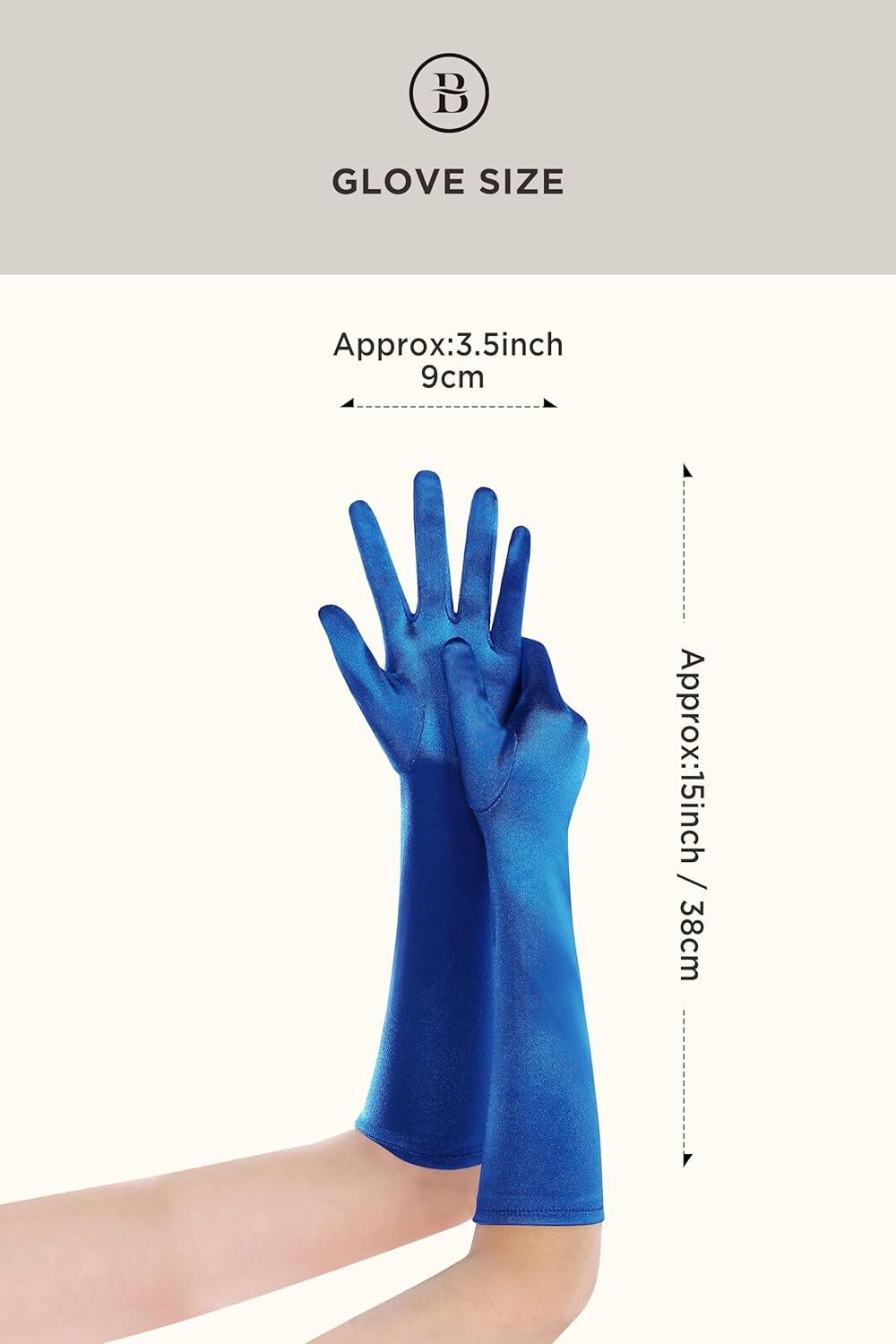 BABEYOND Long Opera Party 20s Satin Gloves Stretchy Adult Size Elbow Length 15 Inches(Blue)