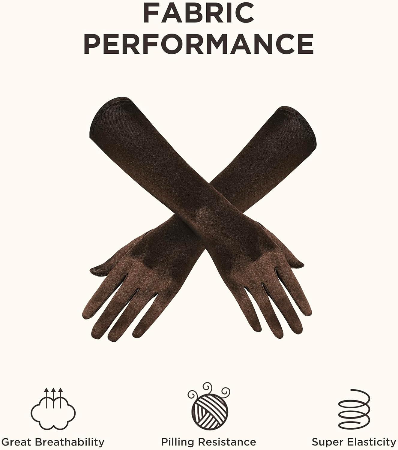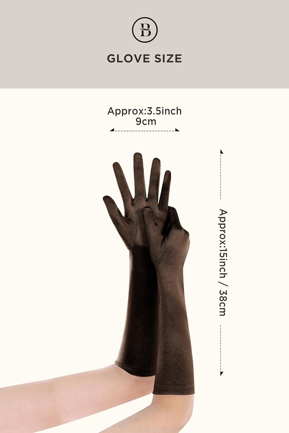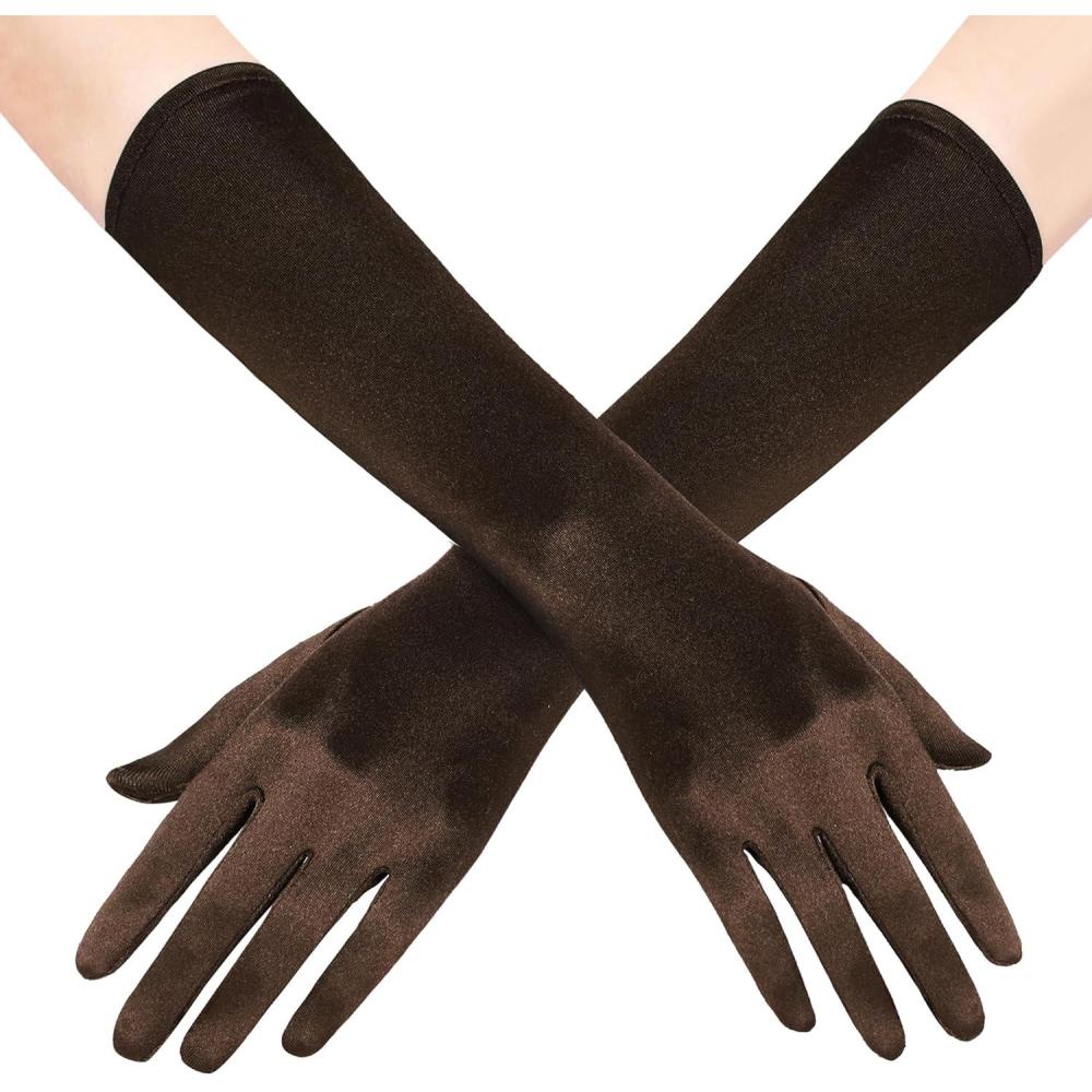 BABEYOND Long Opera Party 20s Satin Gloves Stretchy Adult Size Elbow Length 15 Inches(Brown)