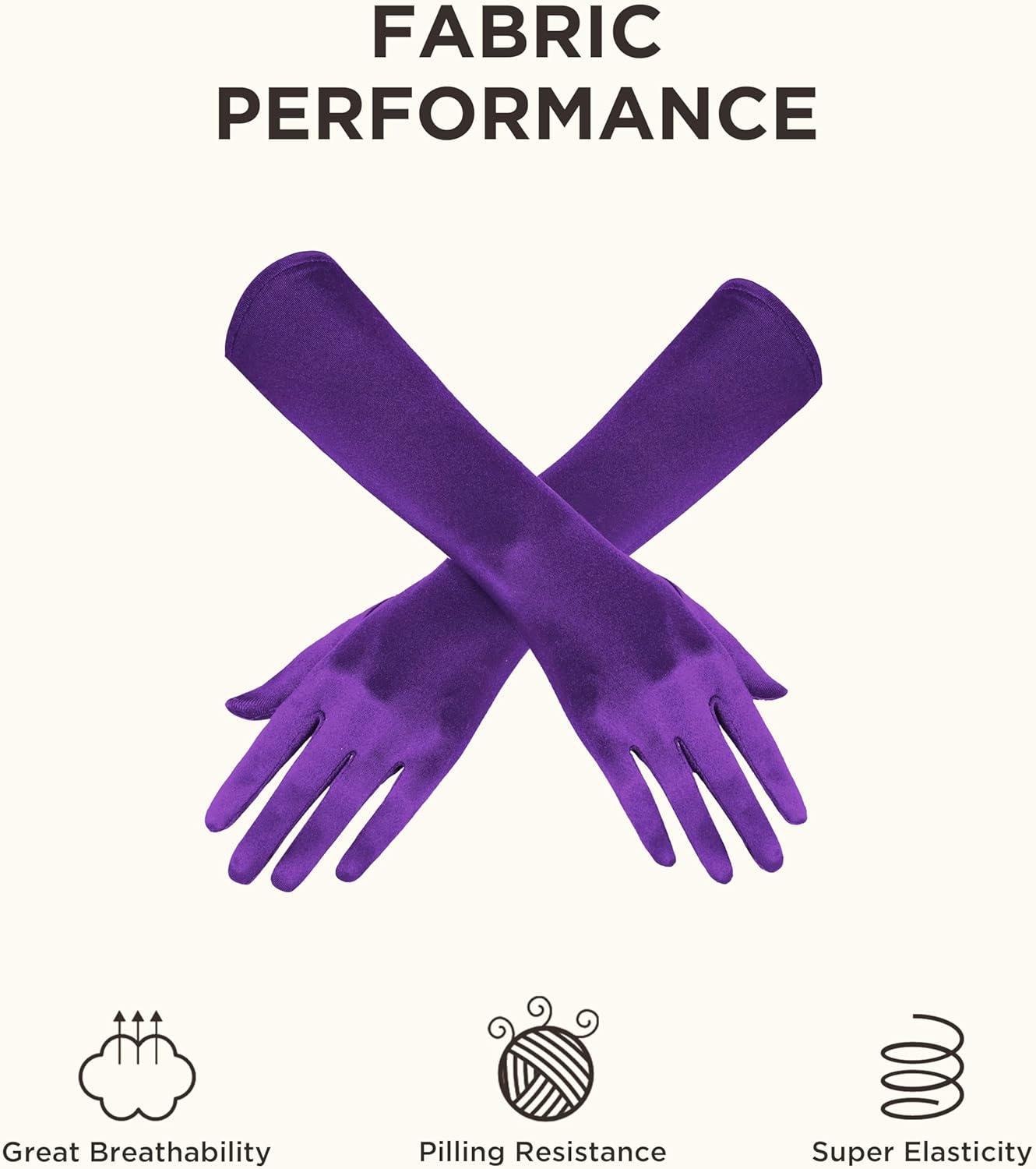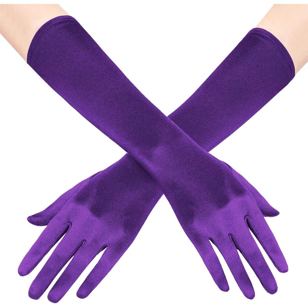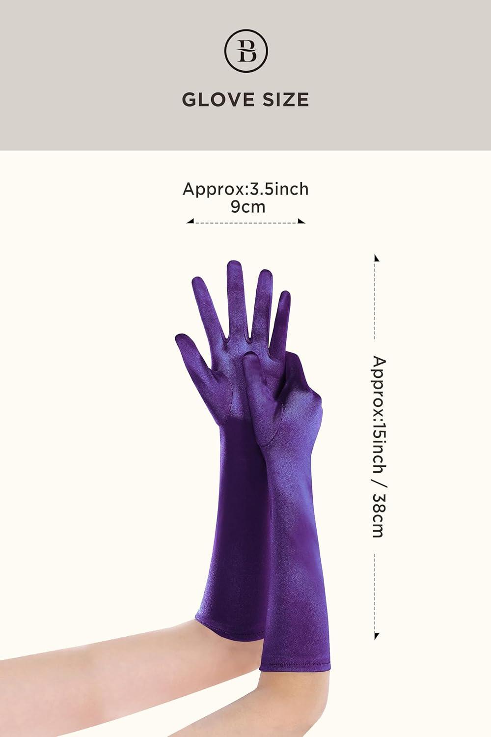 BABEYOND Long Opera Party 20s Satin Gloves Stretchy Adult Size Elbow Length 15 Inches(Purple)