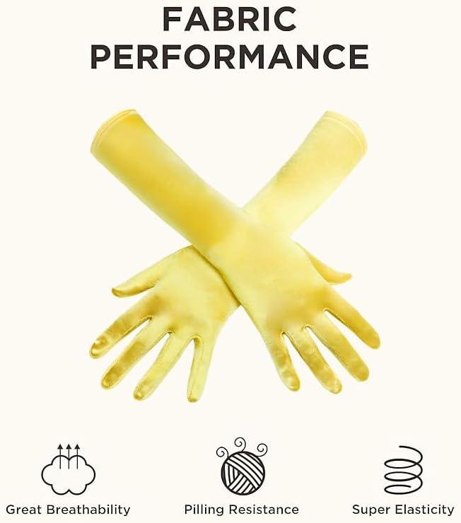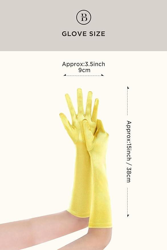 BABEYOND Long Opera Party 20s Satin Gloves Stretchy Adult Size Elbow Length 15 Inches(Yellow)