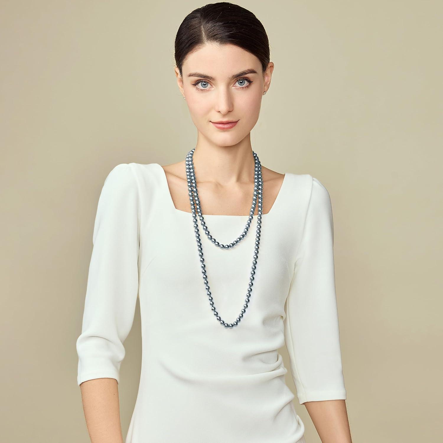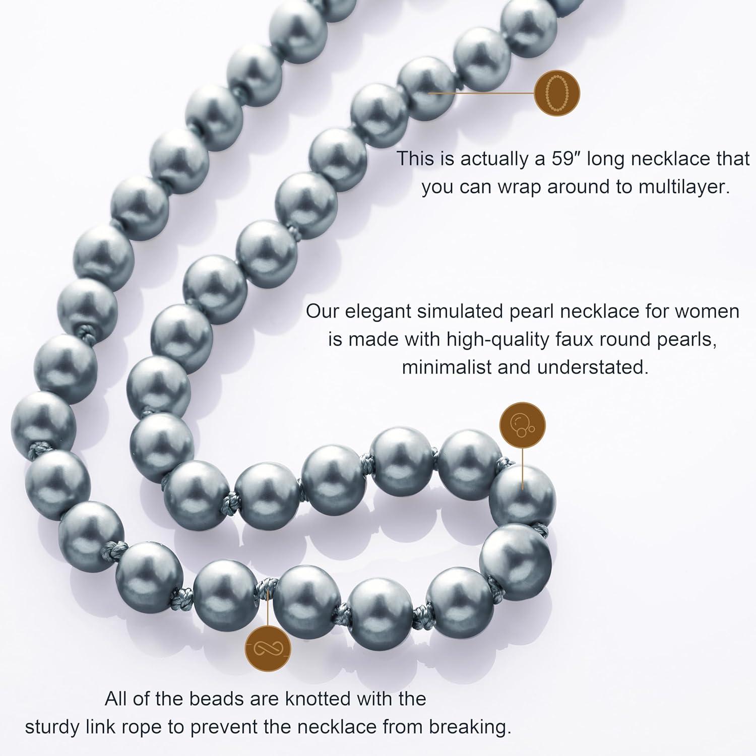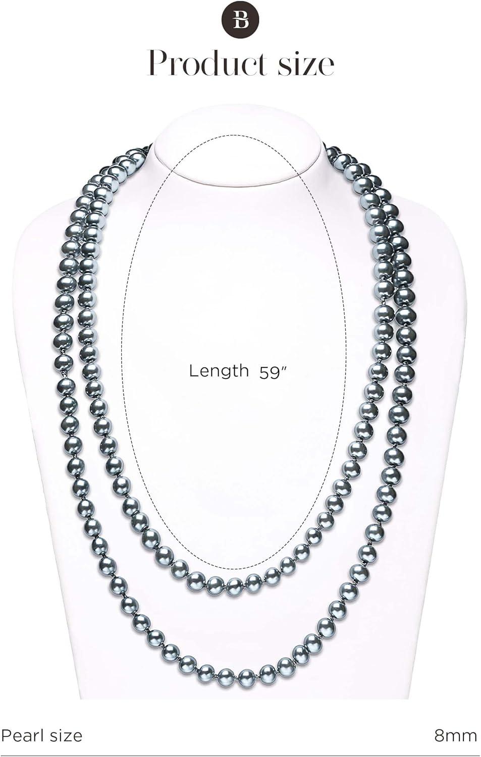 BABEYOND Long Pearl Necklace Faux Pearls Necklace Set Beaded Long Pearls Necklace 1920s Gatsby Costume Jewelry(Space Gray)