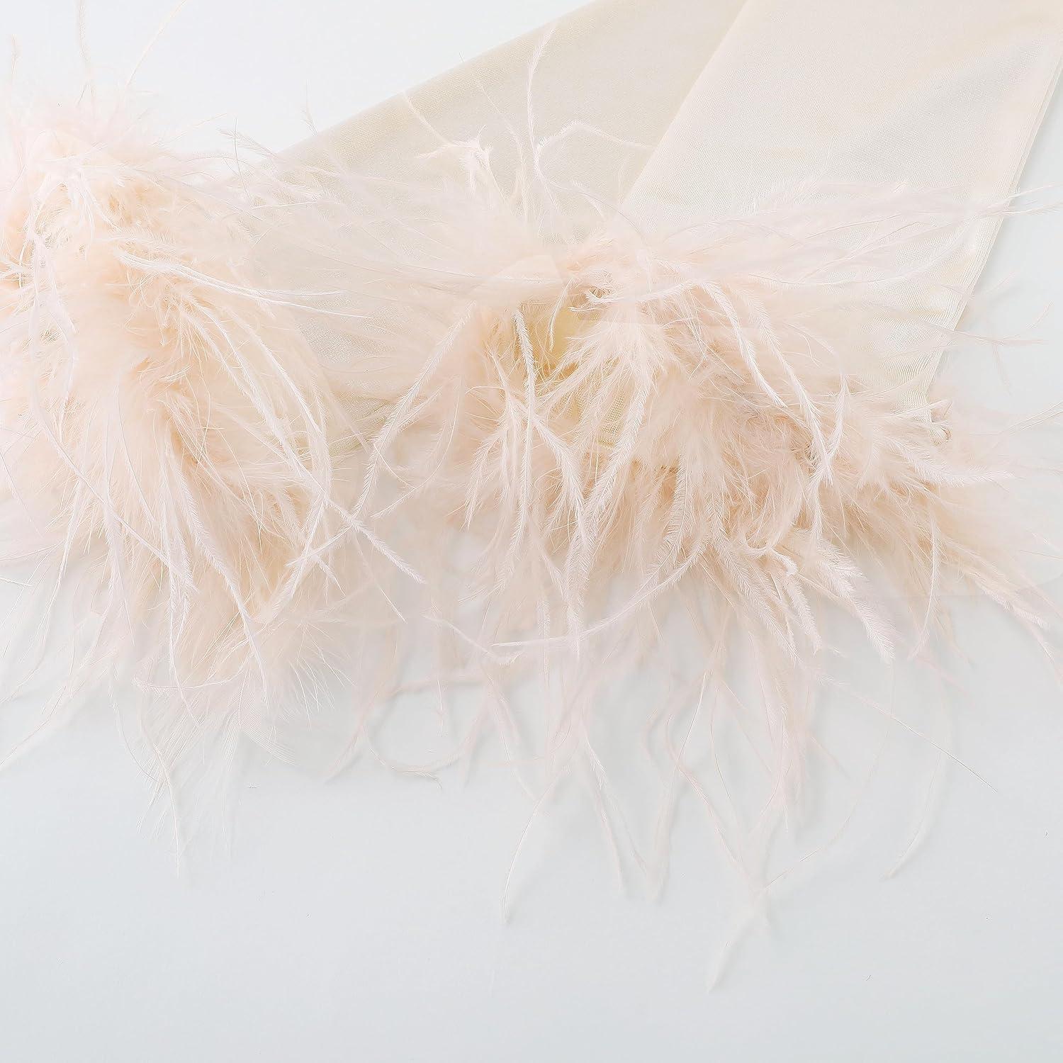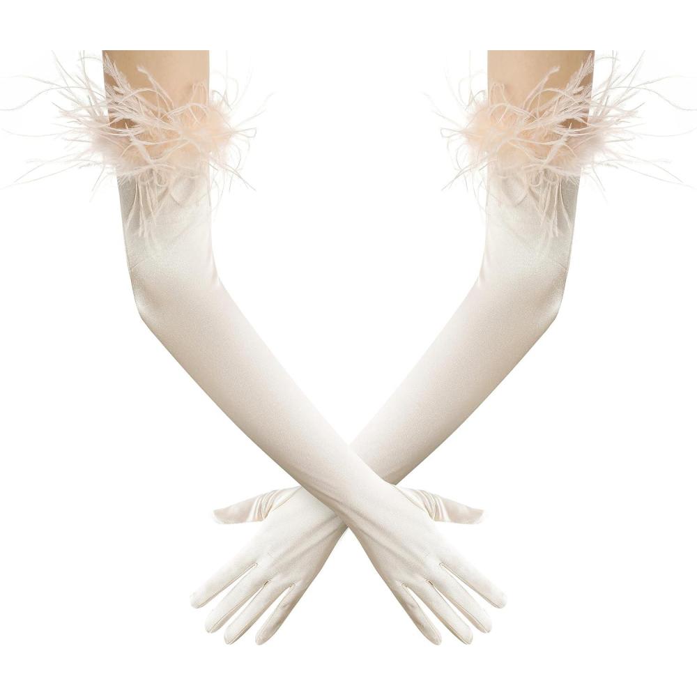 BABEYOND Long Satin Opera Gloves - Pageant Feather Gloves 1920s Stretchy Elbow Gloves for Halloween Costume Evening Party(Champagne)
