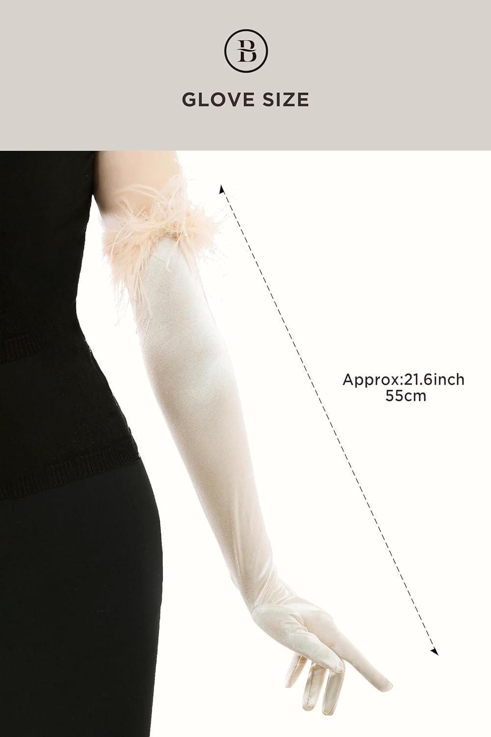 imageBABEYOND Long Satin Opera Gloves  Pageant Feather Gloves 1920s Stretchy Elbow Gloves for Halloween Costume Evening PartyChampagne