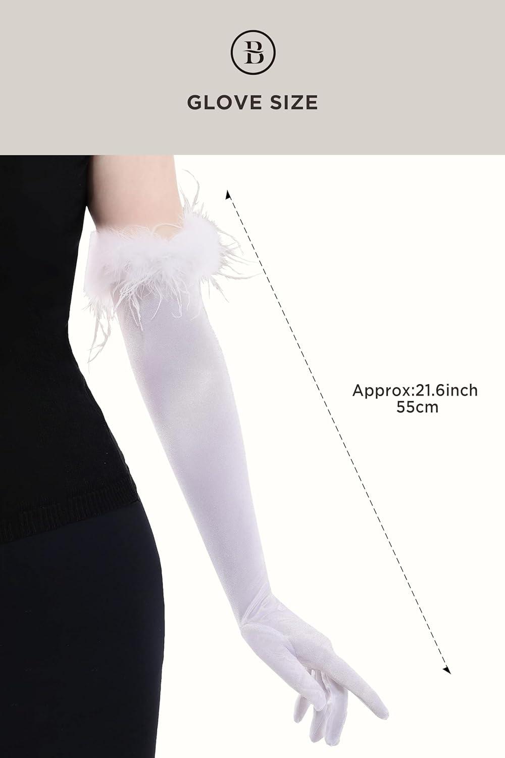 imageBABEYOND Long Satin Opera Gloves  Pageant Feather Gloves 1920s Stretchy Elbow Gloves for Halloween Costume Evening PartyWhite