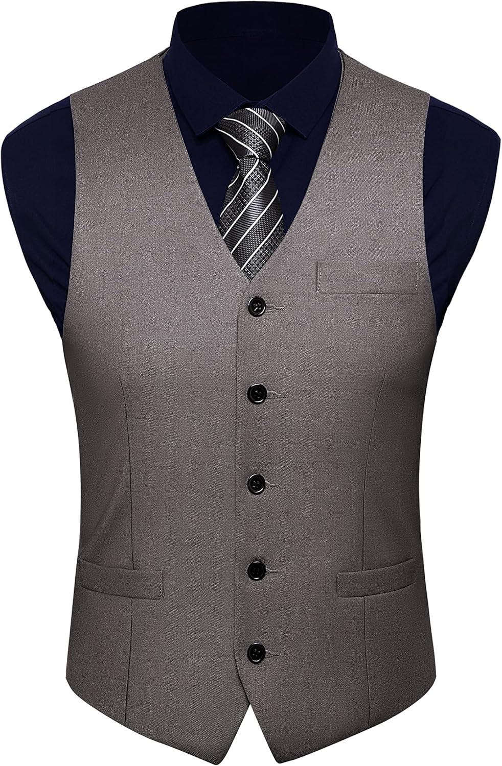 BABEYOND Men’s Formal Suit Vest Slim Fit Waistcoat Business Vest for Suit Tuxedo(Gray)