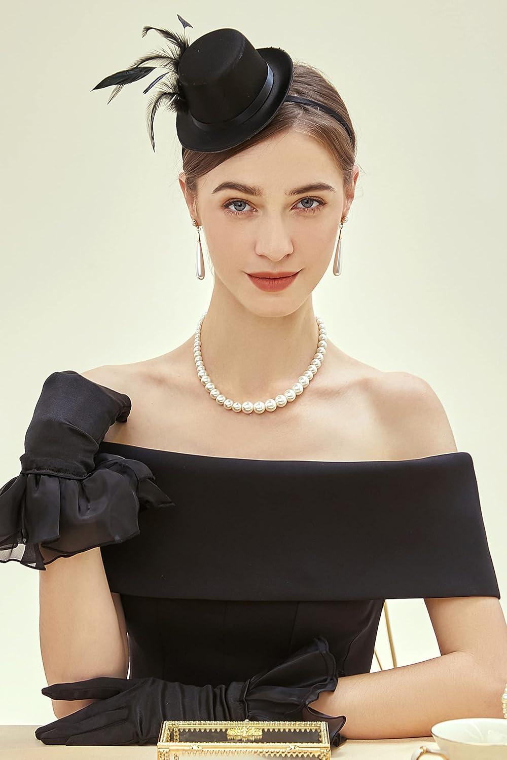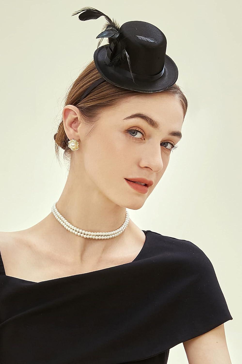 imageBABEYOND Mini Top Hat Fascinator Headband Feather Top Hat for Derby Tea PartyBlack