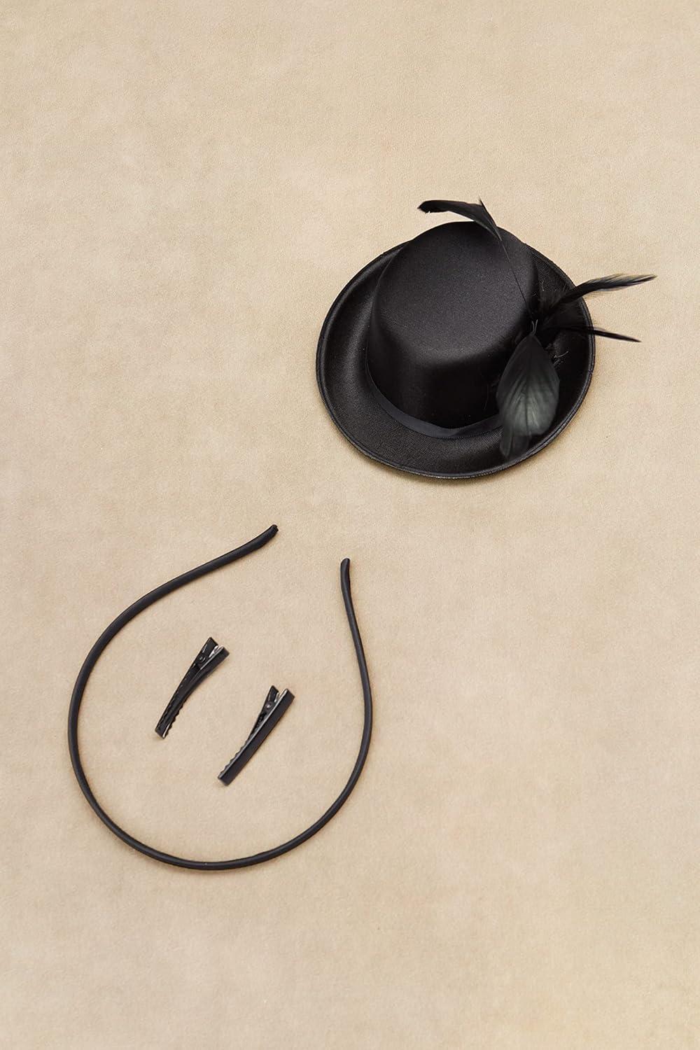 BABEYOND Mini Top Hat Fascinator Headband Feather Top Hat for Derby Tea Party(Black)