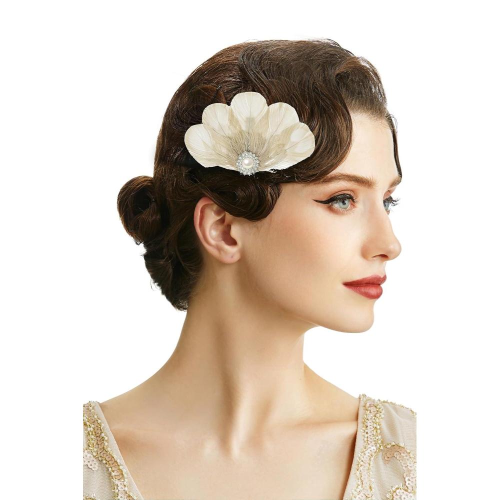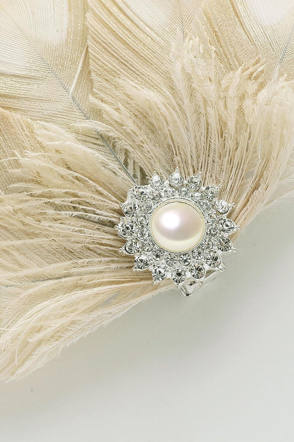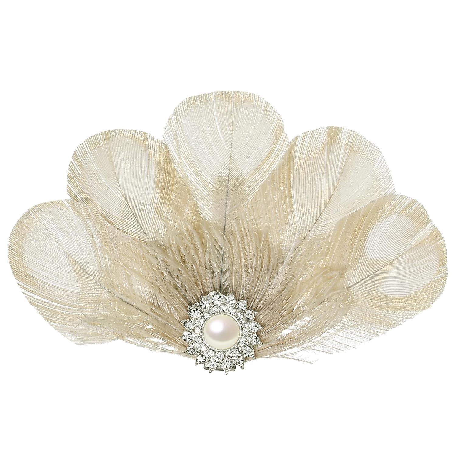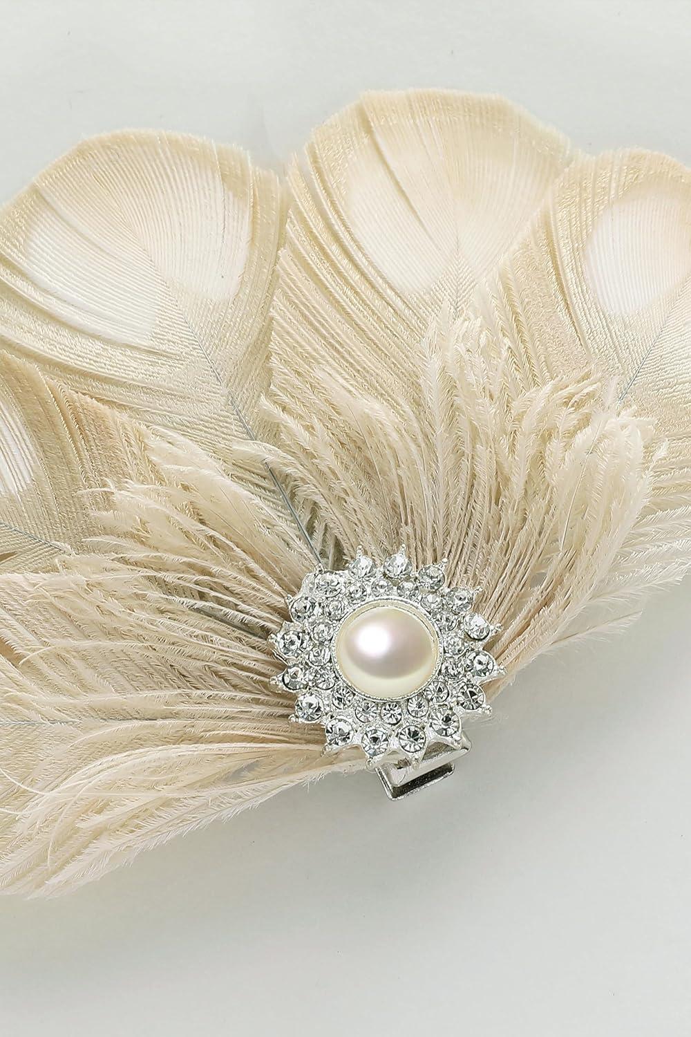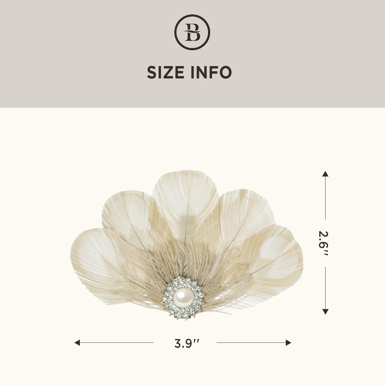 BABEYOND Peacock Feather Hair Clip Peacock Fascinator with Rhinestones Roaring 20s Peacock Flapper Fascinator 1920s Headpiece(Beige)
