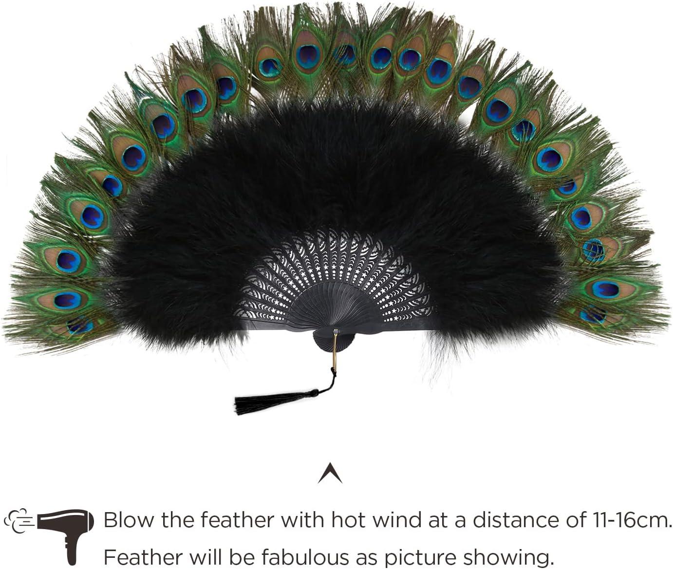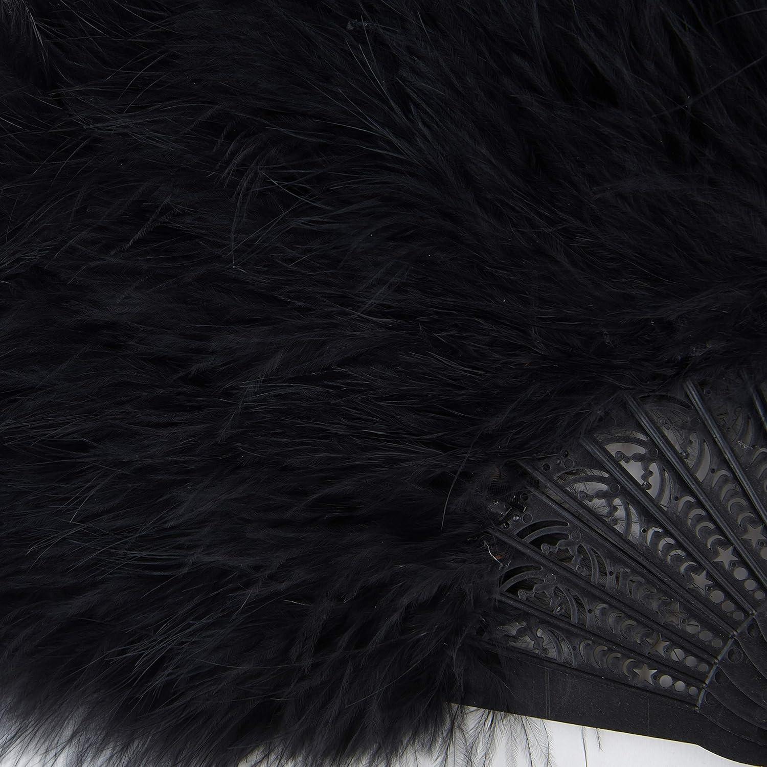 BABEYOND Peacock Marabou Feather Fan – Roaring 20s Vintage Style Flapper Accessories for Costume Halloween Tea Party(Black-black Rib)