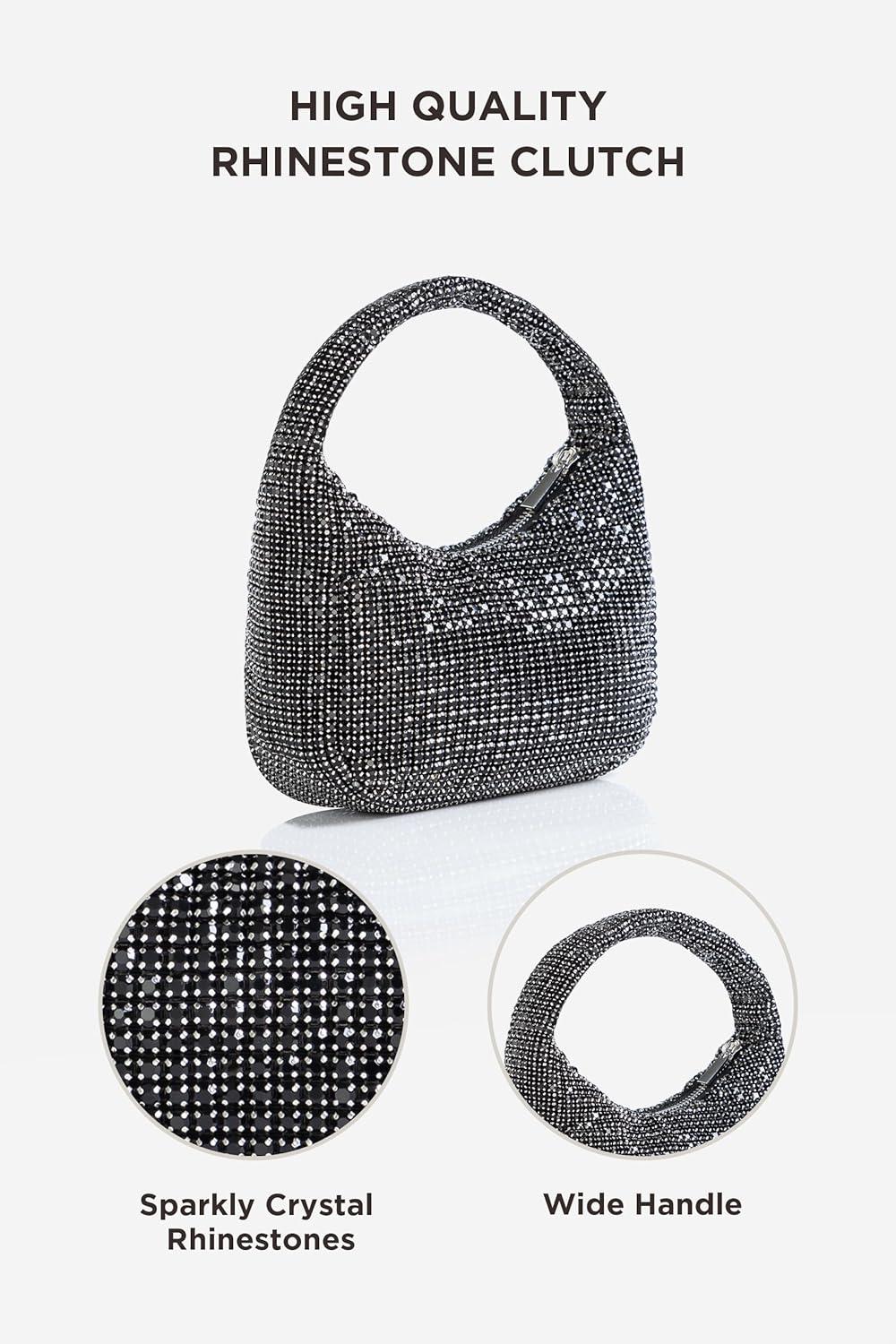 BABEYOND Rhinestone Purse for Women – Sparkly Evening Bags Full Glitter Rhinestone Portable Handbag for Party Wedding Prom(1-black)