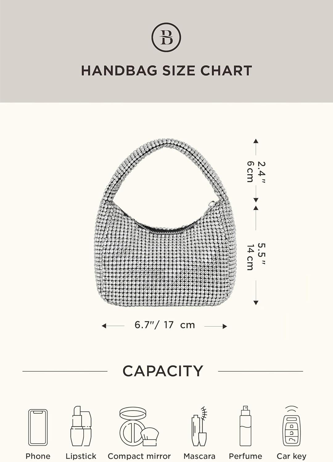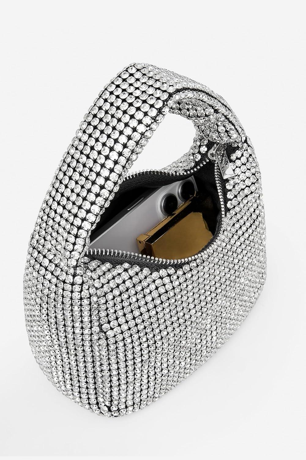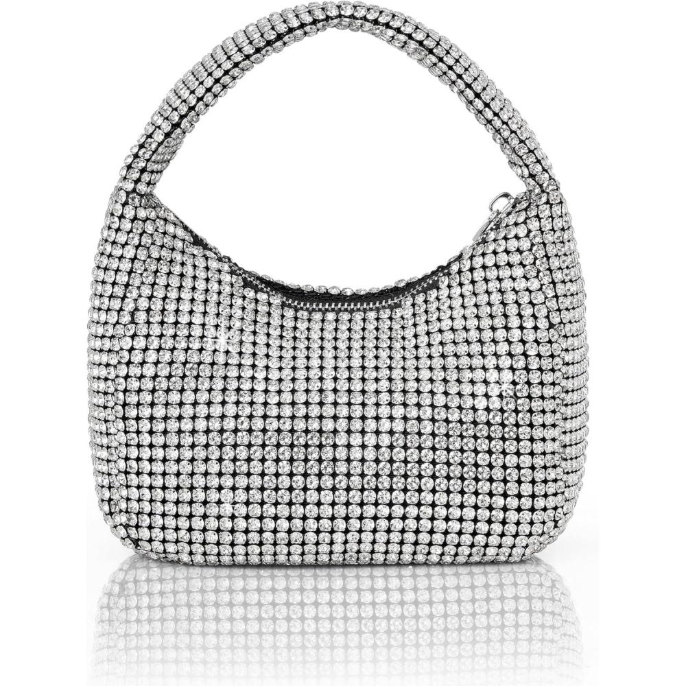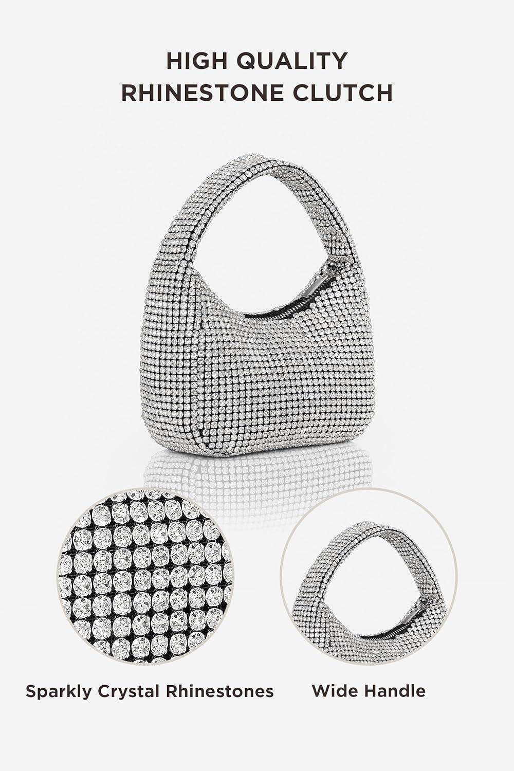 BABEYOND Rhinestone Purse for Women – Sparkly Evening Bags Full Glitter Rhinestone Portable Handbag for Party Wedding Prom(1-silver)