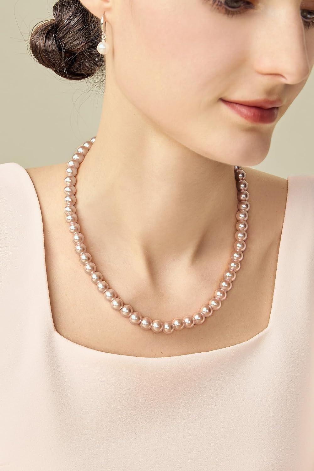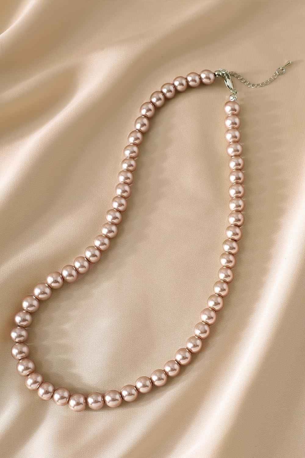 BABEYOND Round Imitation Pearl Necklace Wedding Pearl Necklace for Brides(Apricotn)