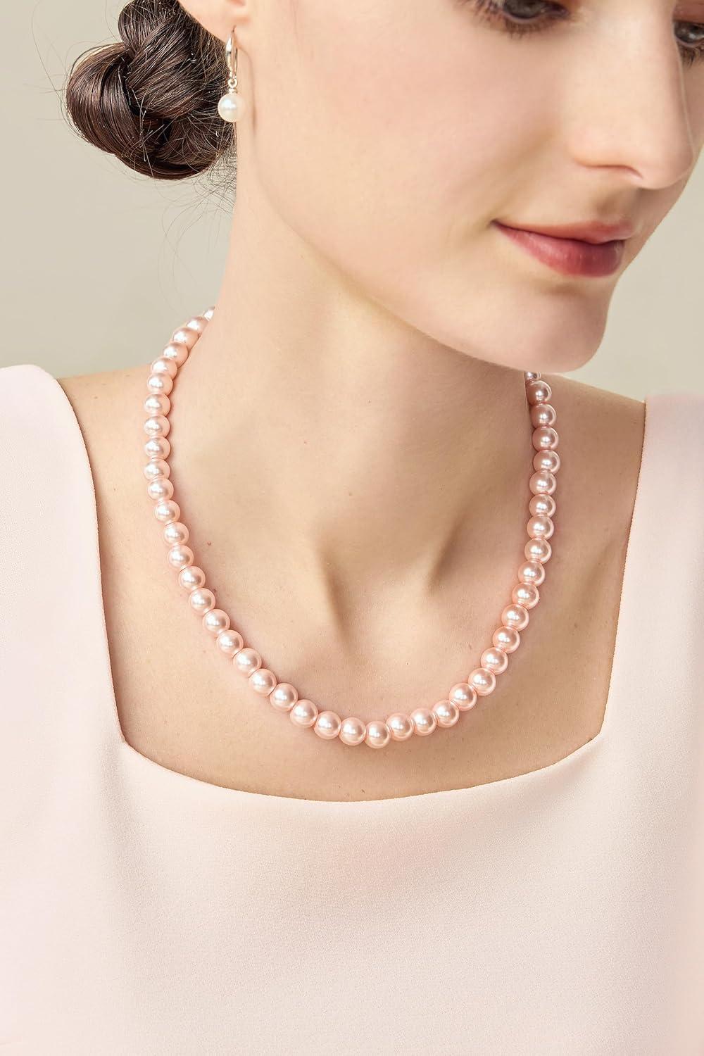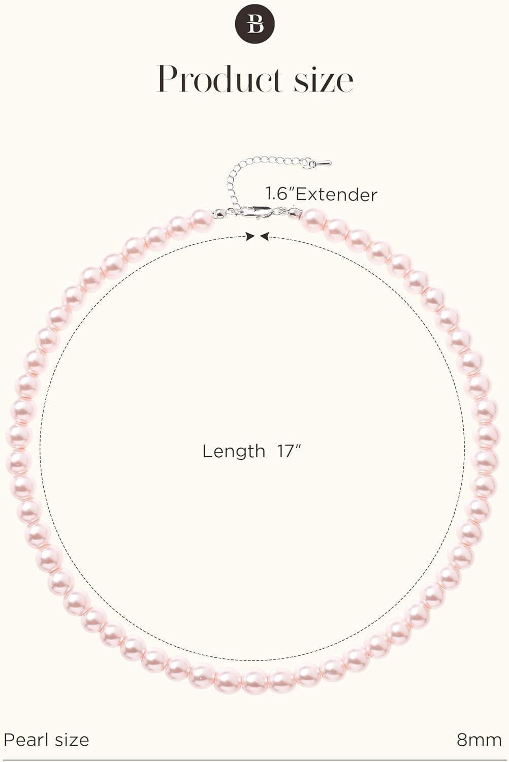 BABEYOND Round Imitation Pearl Necklace Wedding Pearl Necklace for Brides(Pink)