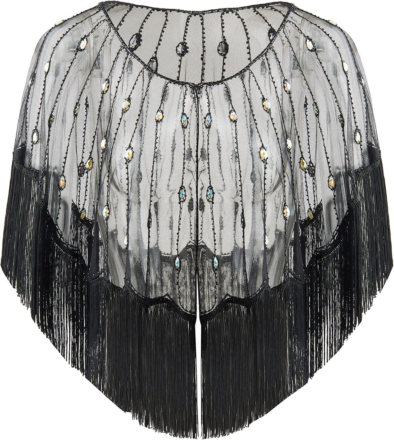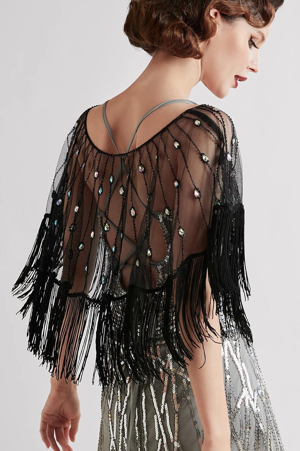 BABEYOND Sequin Beaded Shawl Wrap 1920s Evening Cape Shawl Gatsby for Evening Dresses Wedding Party(Black)