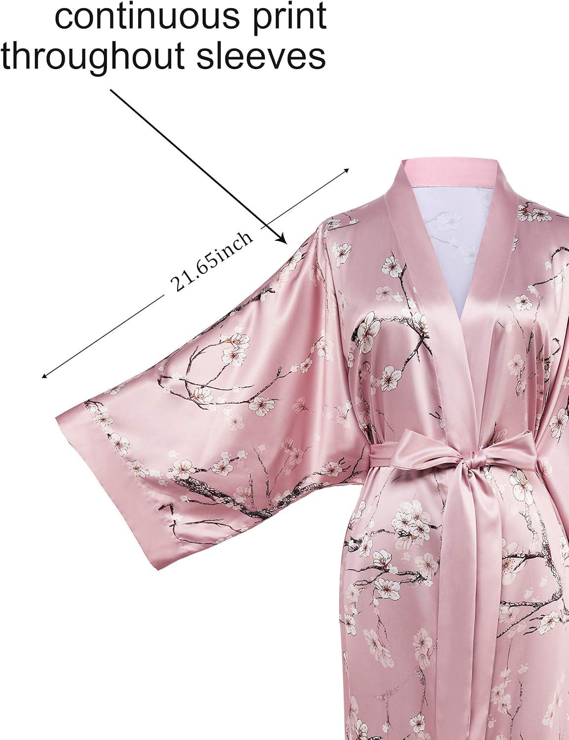 BABEYOND Floral Kimono Robe – Satin Silk Wedding 1920s Women Nightgown Sleepwear – 53 Inches Long