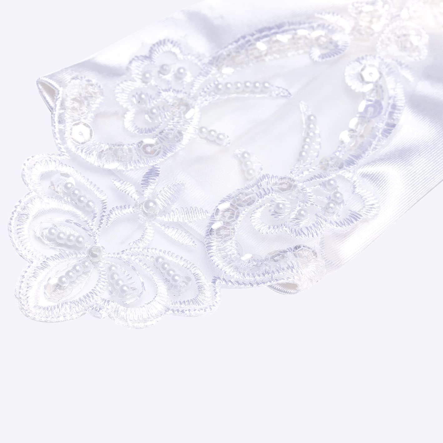 BABEYOND Short Opera Party 20s Satin Gloves Stretchy Adult Size Tea Party Wedding Lace Gloves 11.8 "(White)