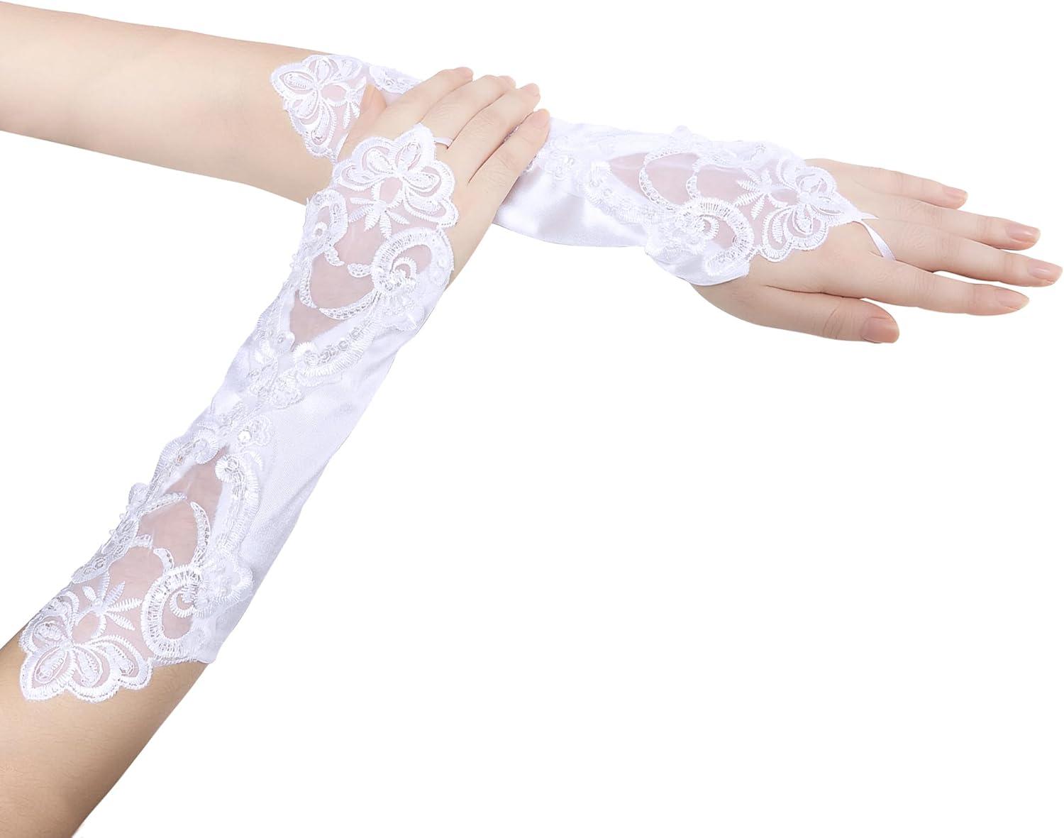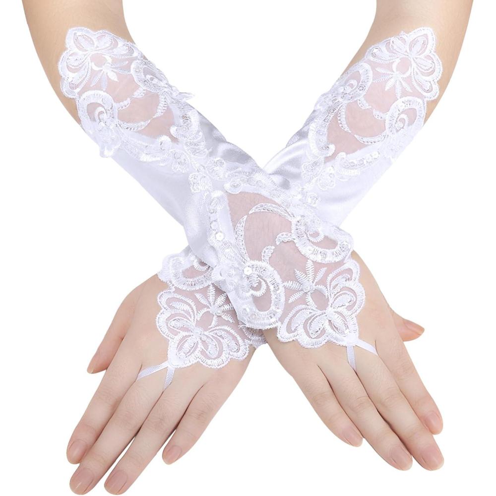 imageBABEYOND Short Opera Party 20s Satin Gloves Stretchy Adult Size Tea Party Wedding Lace Gloves 118 quotWhite