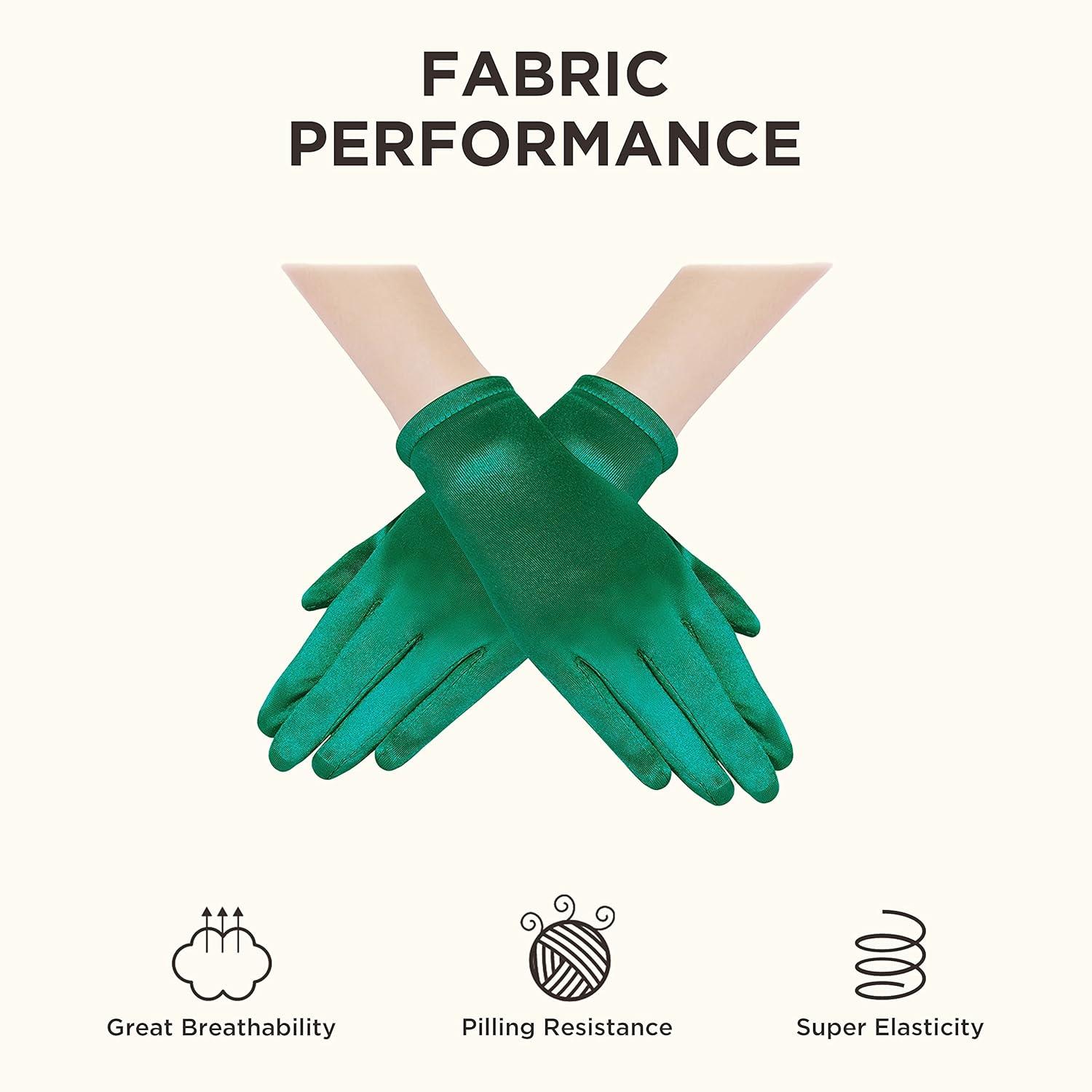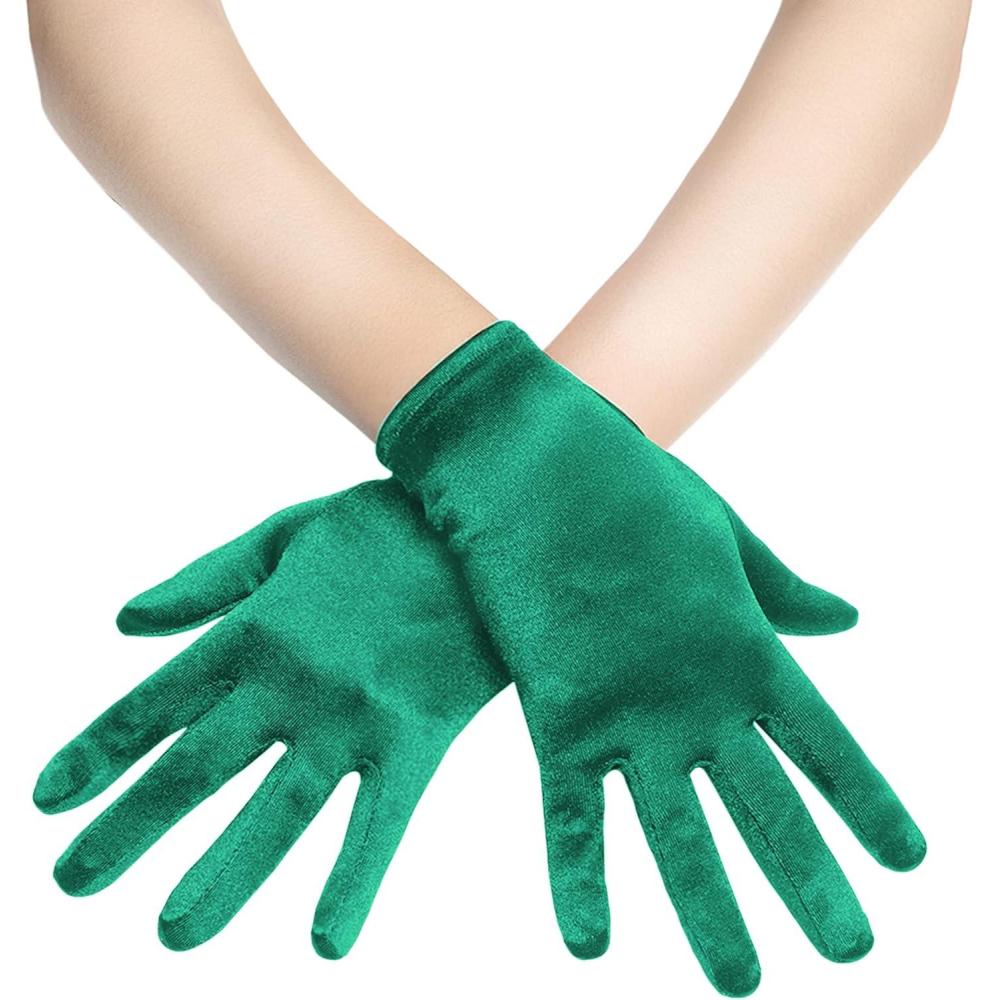 BABEYOND Short Satin Gloves for Women - Silk Opera Wedding Bridal Gloves Tea Party Banquet Costume 1920s Flapper Accessories(Dark Green)