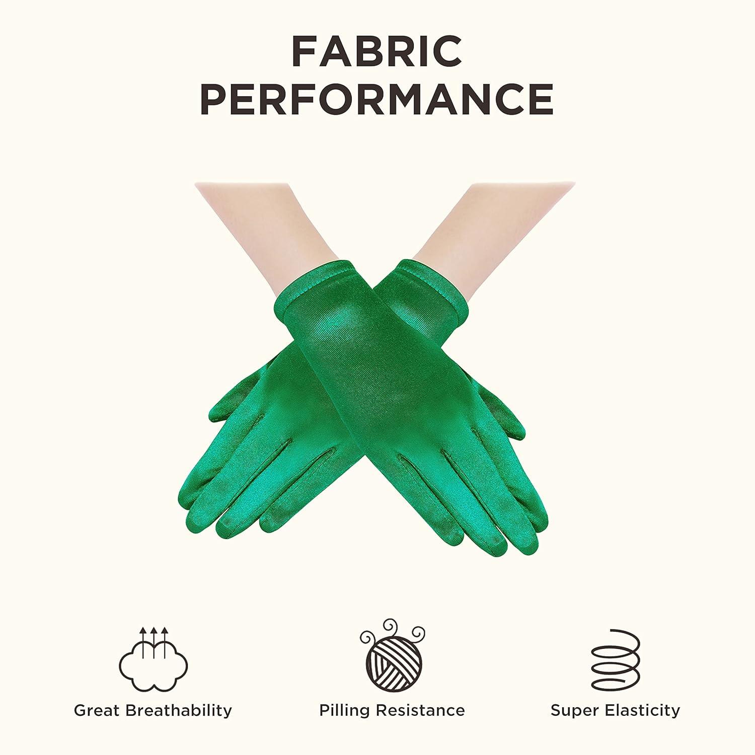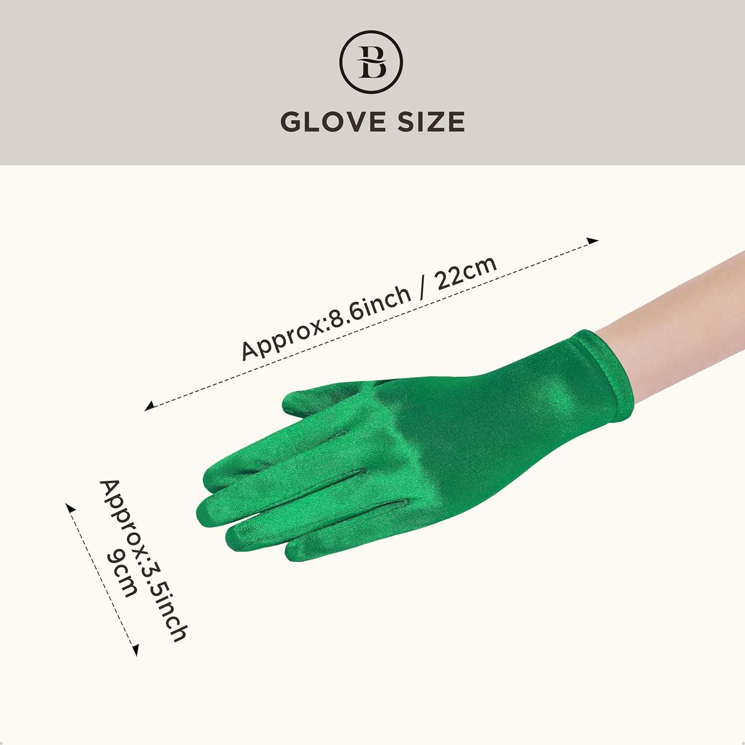 BABEYOND Short Satin Gloves for Women - Silk Opera Wedding Bridal Gloves Tea Party Banquet Costume 1920s Flapper Accessories(Green)