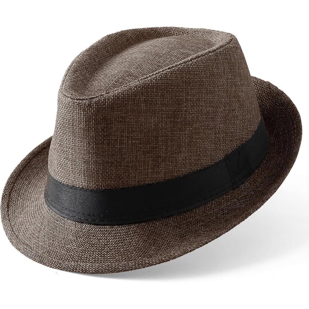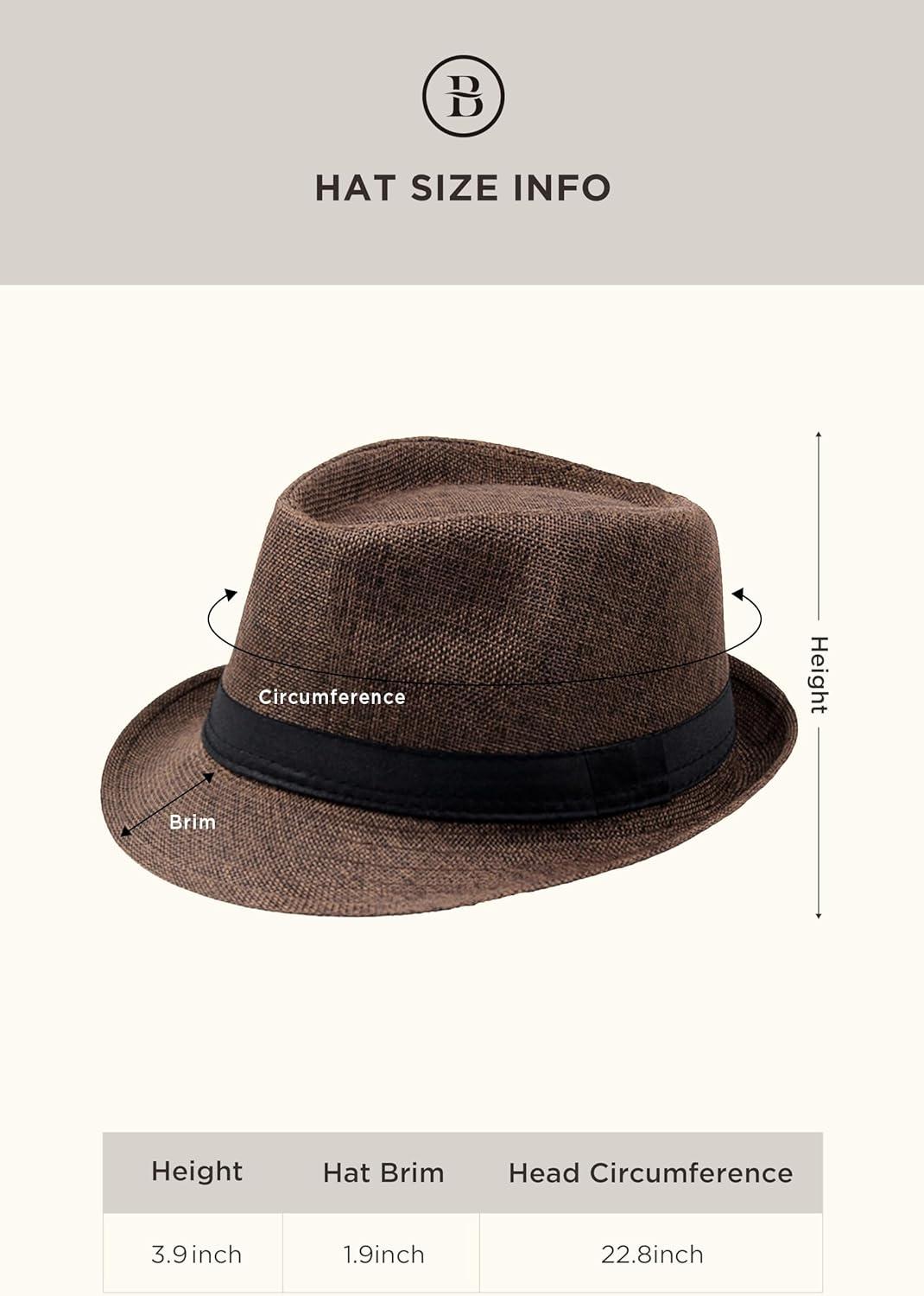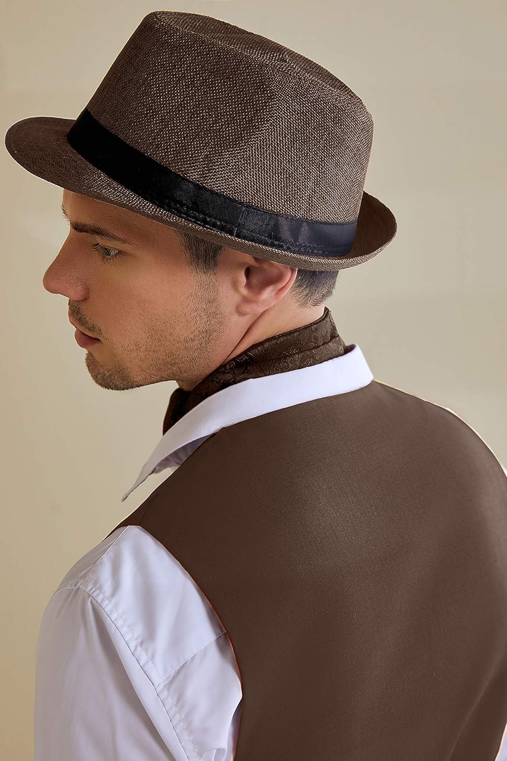 BABEYOND Straw Trilby Fedora Hat for Men-1920s Felt Panama Hat Short Brim Summer Cap with Ribbon(A-brown)