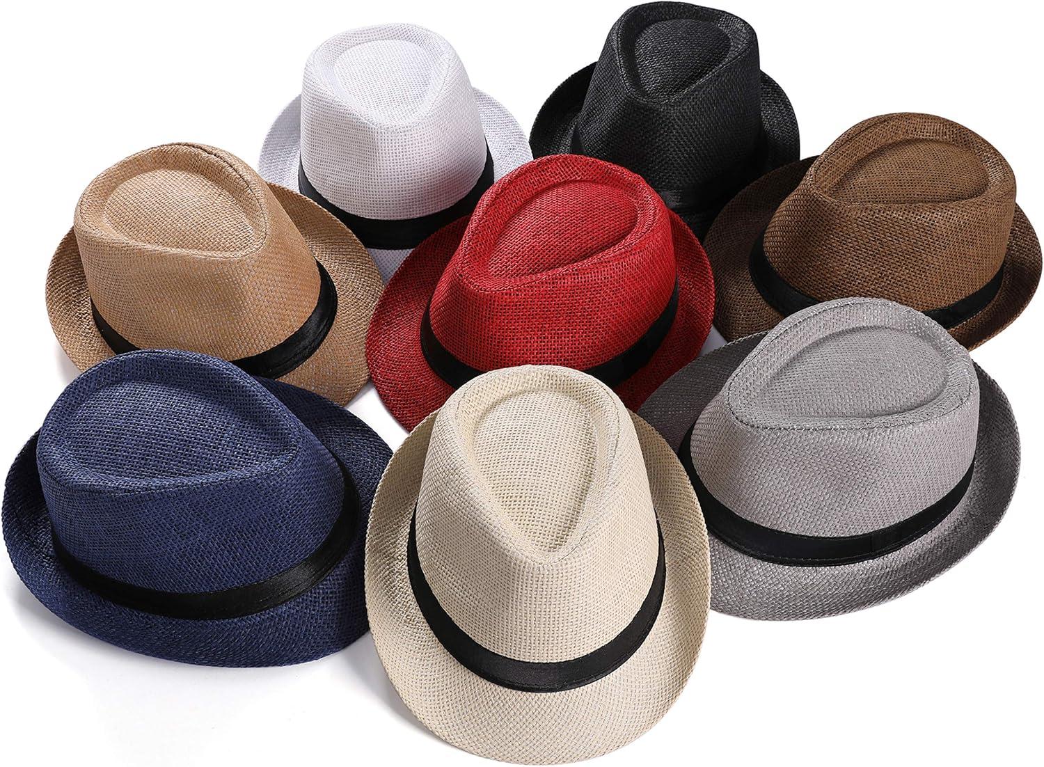 BABEYOND Straw Trilby Fedora Hat for Men-1920s Felt Panama Hat Short Brim Summer Cap with Ribbon(U-white)
