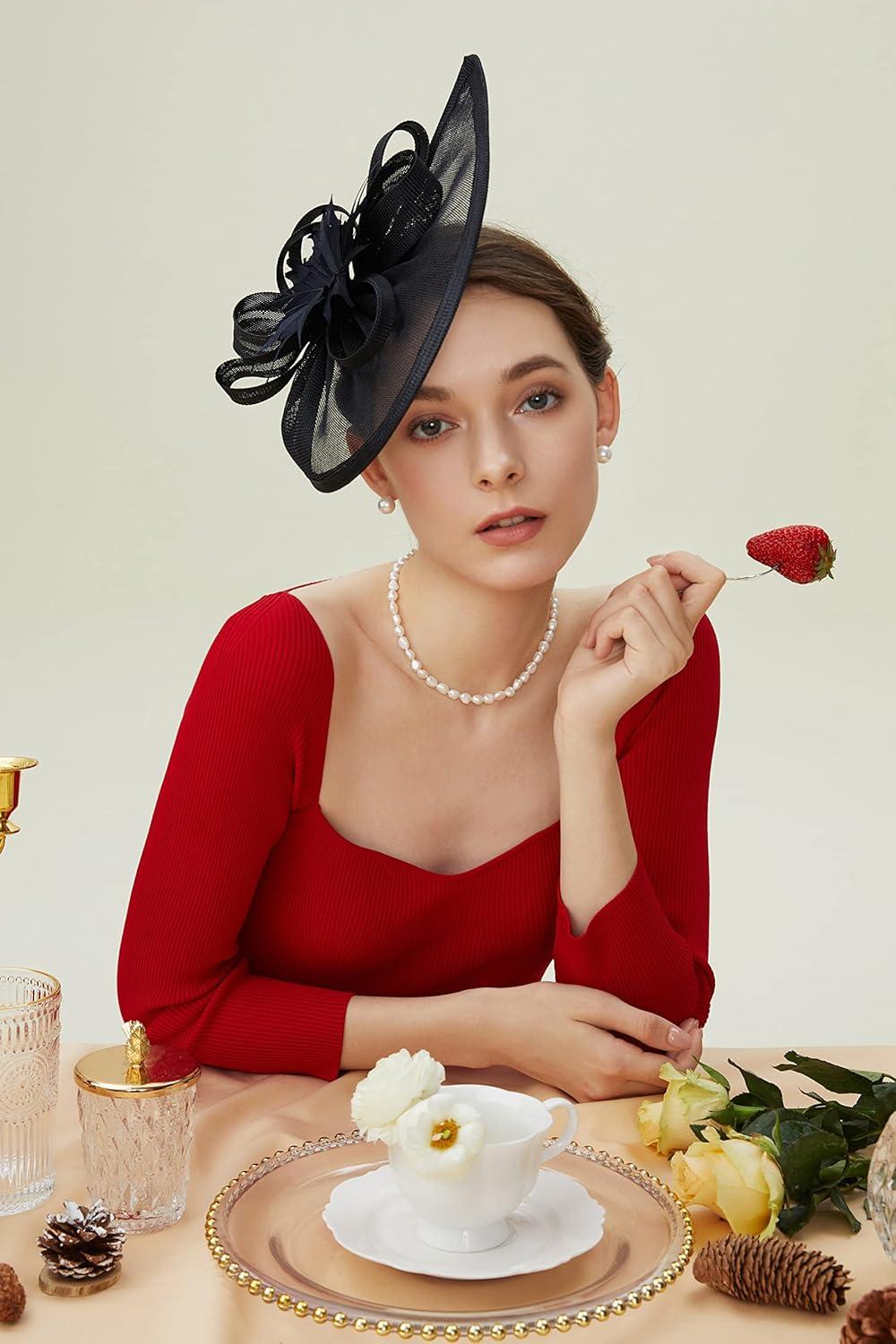 imageBABEYOND Tea Party Fascinator Hat for Women Kentucky Headwear Derby Pillbox Church Hat for Cocktail WeddingAblack