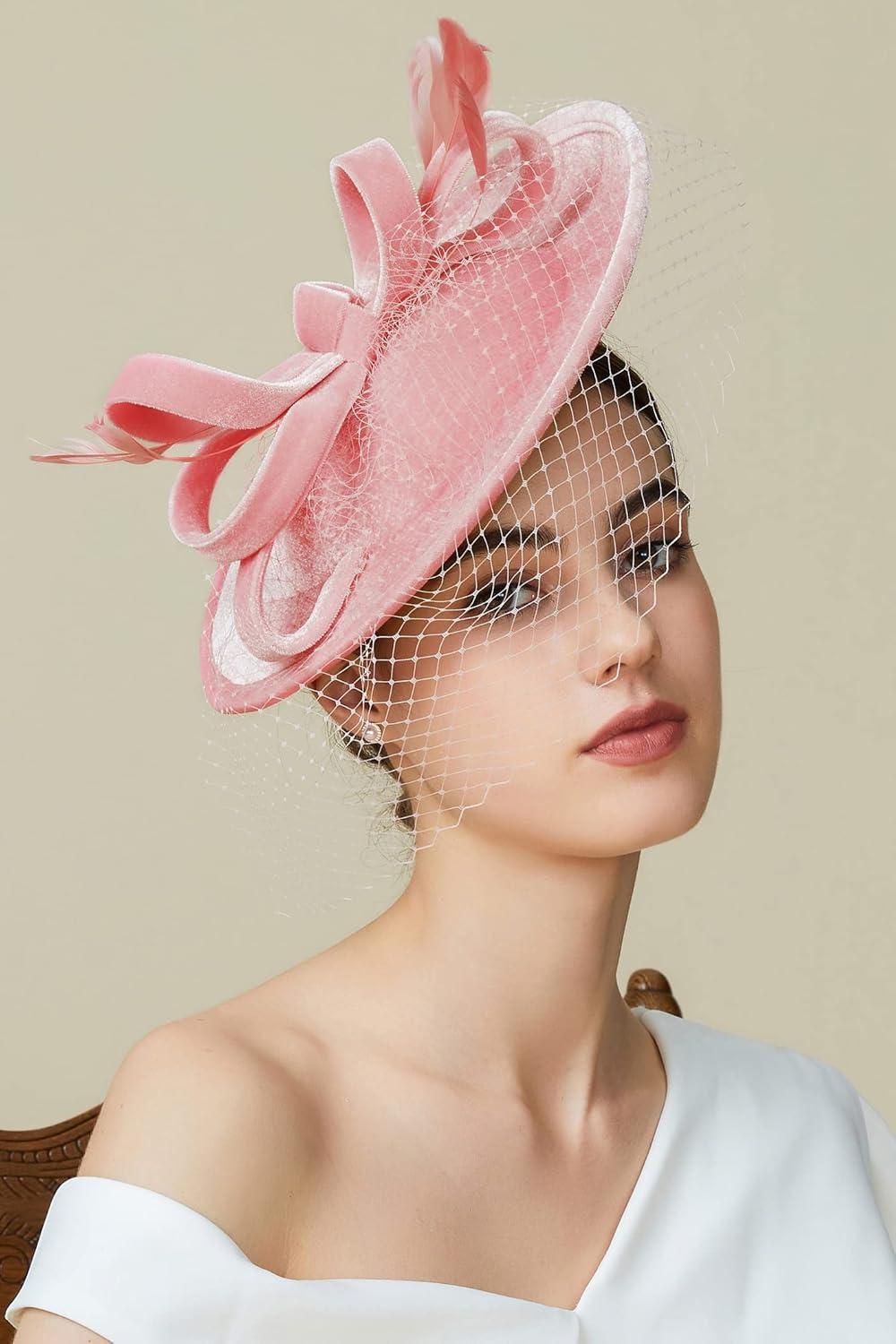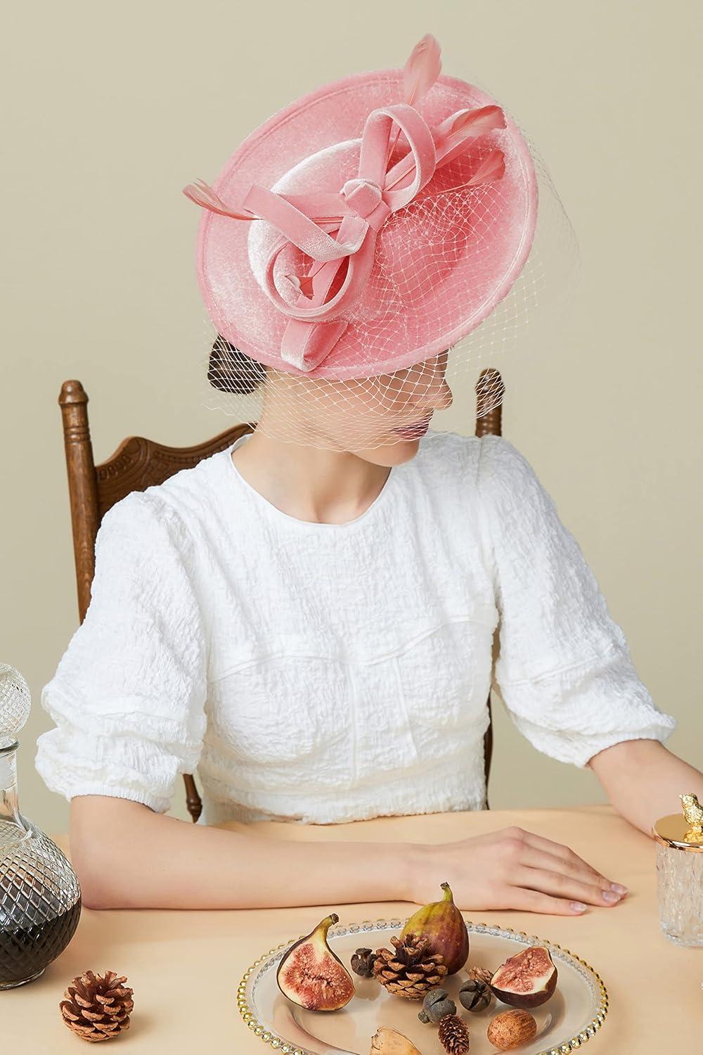 BABEYOND Tea Party Fascinator Kentucky Hat Derby Fascinator Cocktail Pillbox Hat Veil Headband