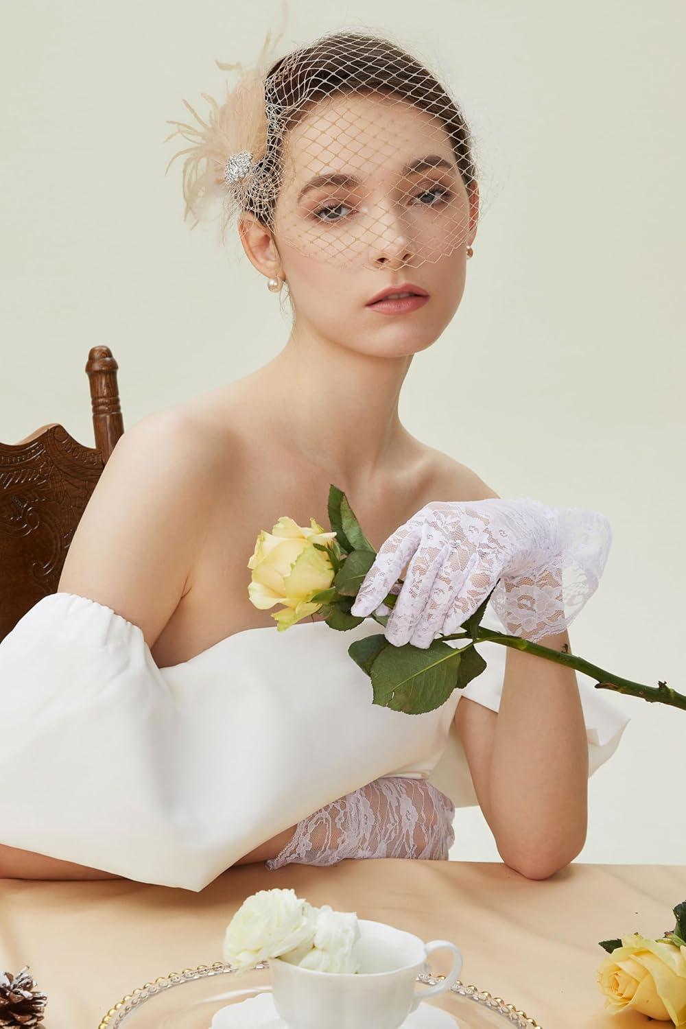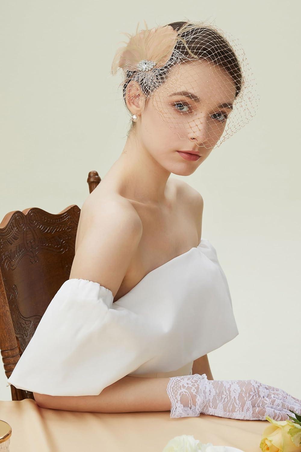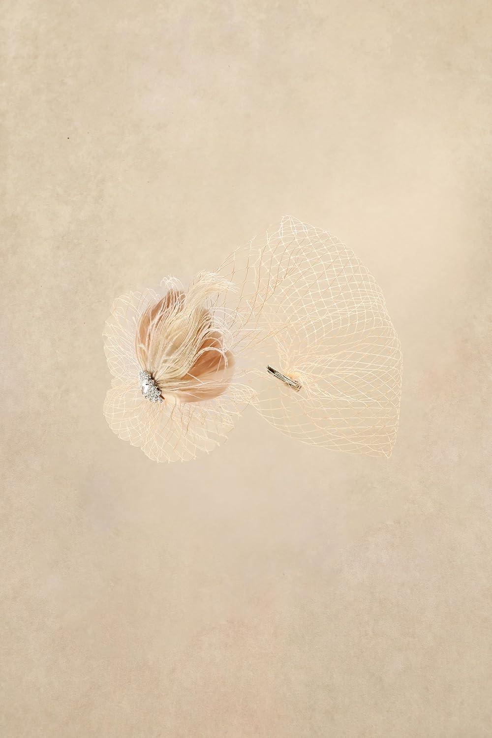 BABEYOND Veil Fascinator Hat for Women Feather Fascinators Hair Clip with Removable Veil Tea Party Hat Bridal Wedding(Champagne)
