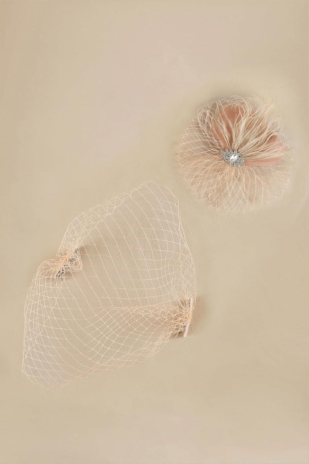 BABEYOND Veil Fascinator Hat for Women Feather Fascinators Hair Clip with Removable Veil Tea Party Hat Bridal Wedding(Nude Pink)