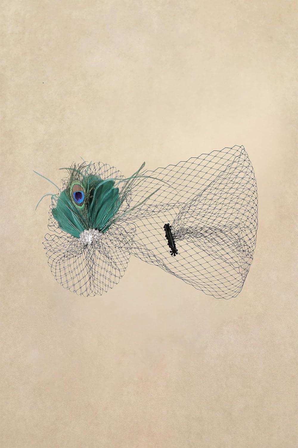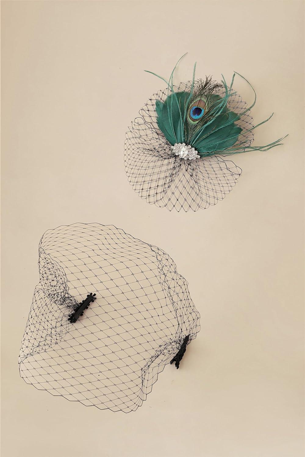 BABEYOND Veil Fascinator Hat for Women Feather Fascinators Hair Clip with Removable Veil Tea Party Hat Bridal Wedding(Peacock Green)
