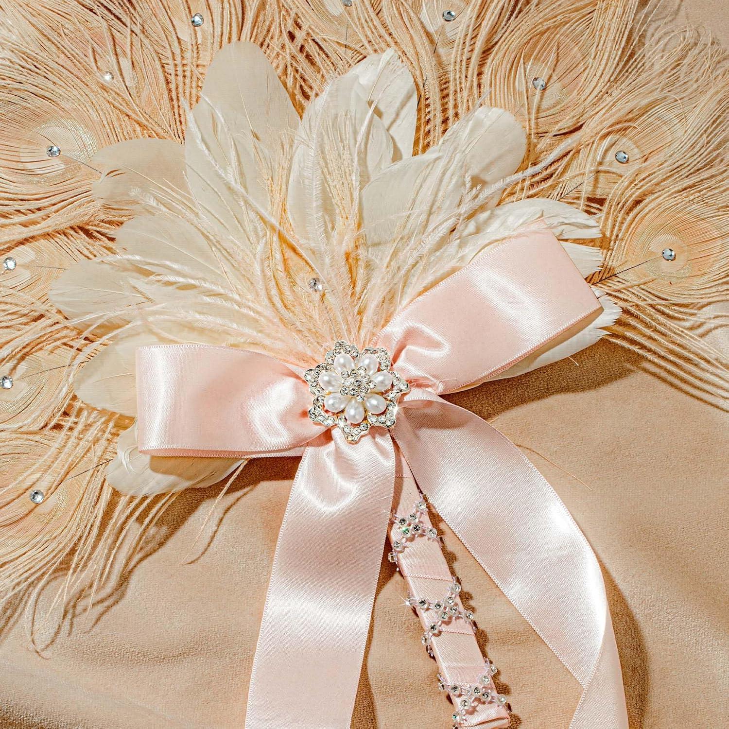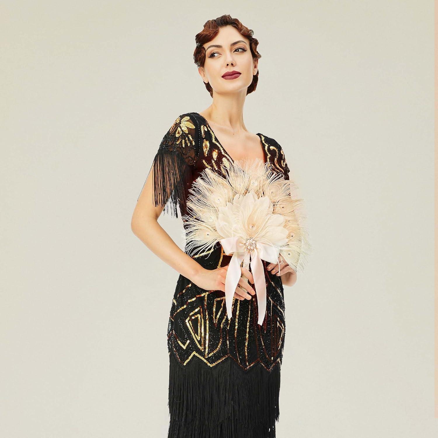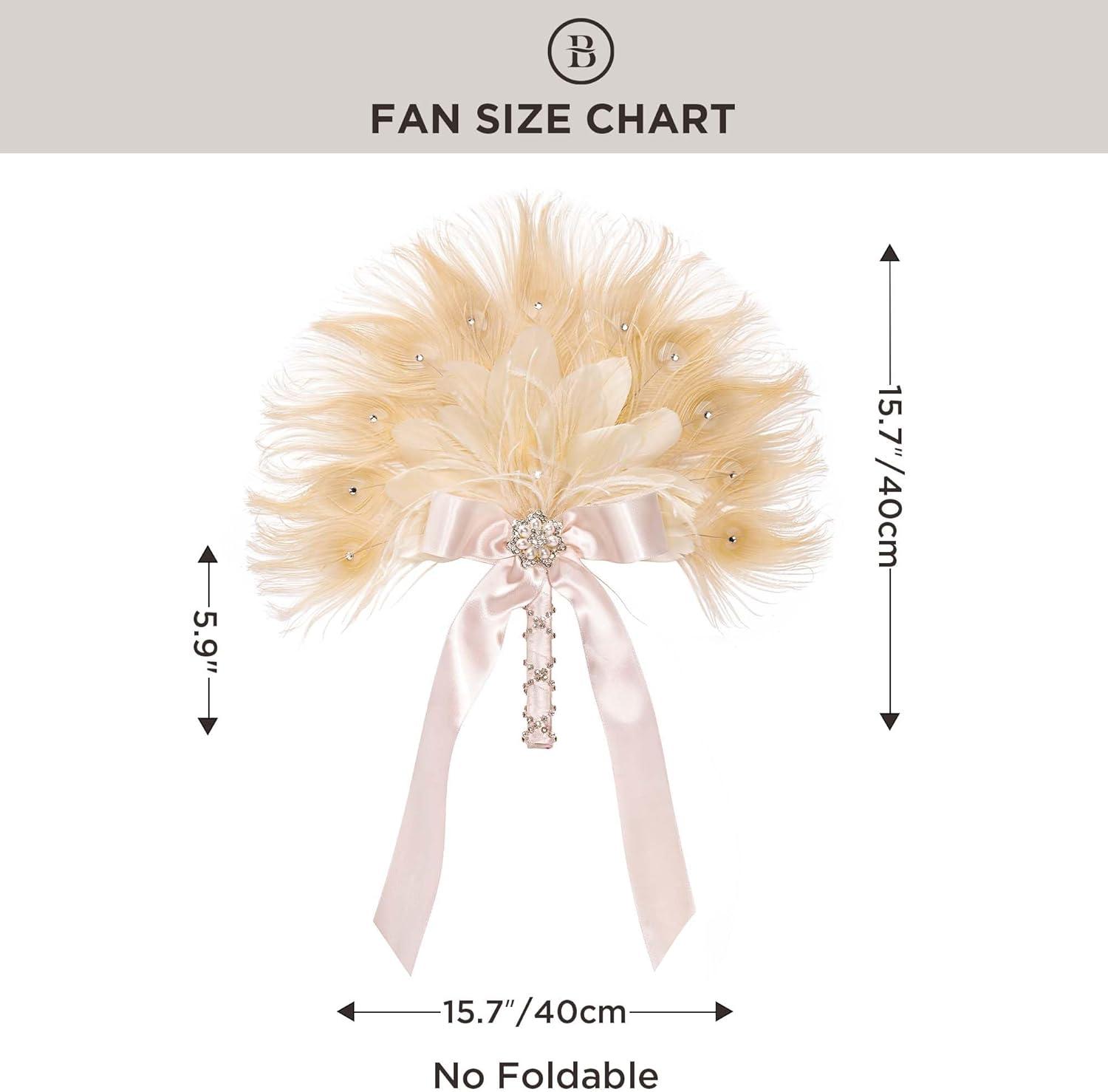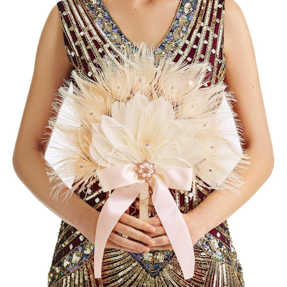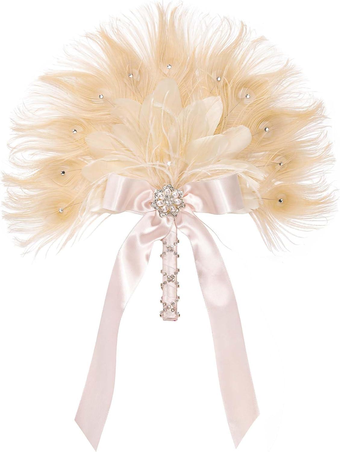 BABEYOND Vintage Bridal Feather Bouquet 1920s Ostrich Feather Fan Crystal Bridesmaid Bouquet 20s Gatsby Wedding Bouquet Flapper Accessories (White)(Champagne)