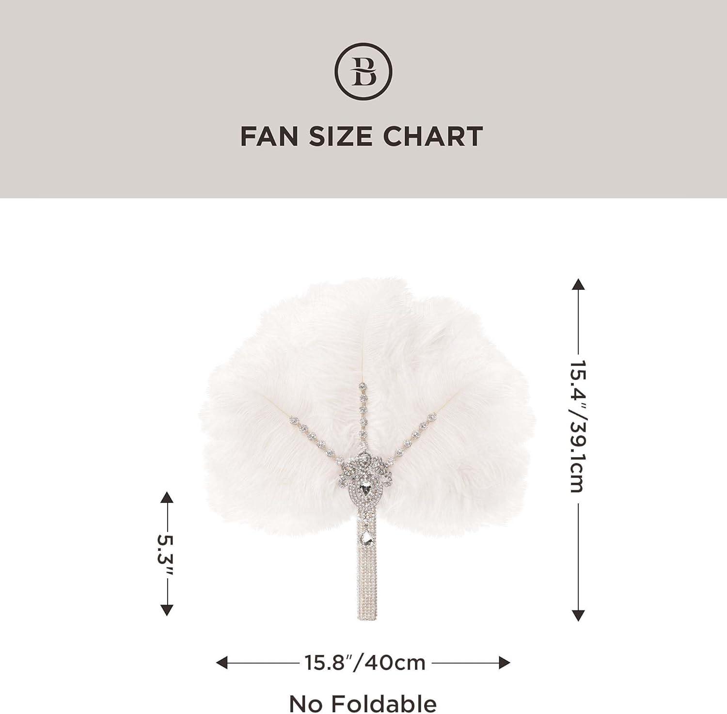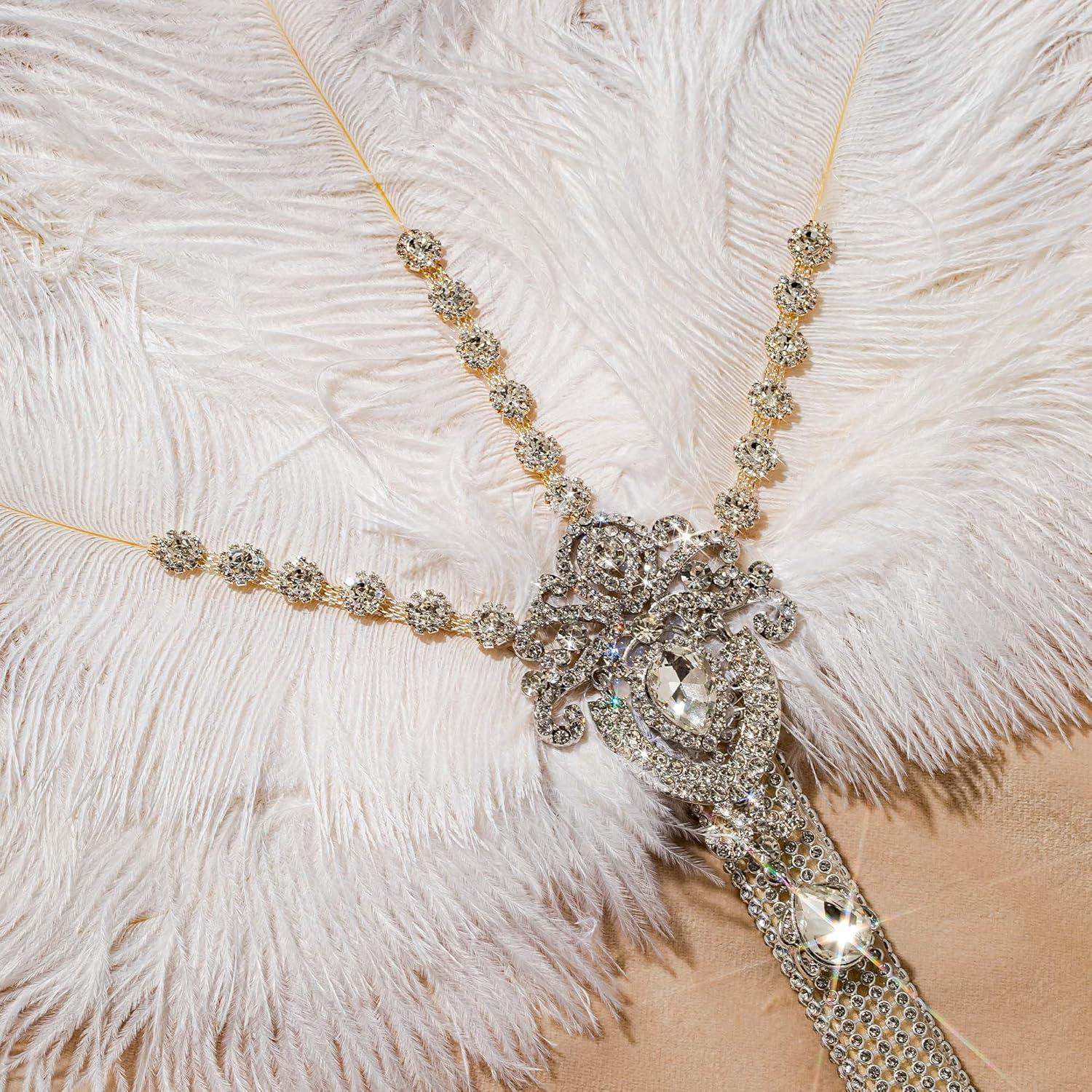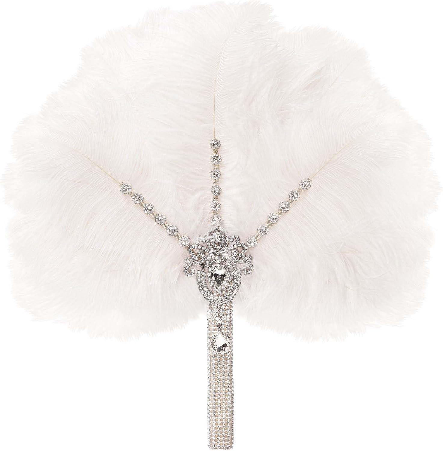 BABEYOND Vintage Bridal Feather Bouquet 1920s Ostrich Feather Fan Crystal Bridesmaid Bouquet 20s Gatsby Wedding Bouquet Flapper Accessories (White)(White)