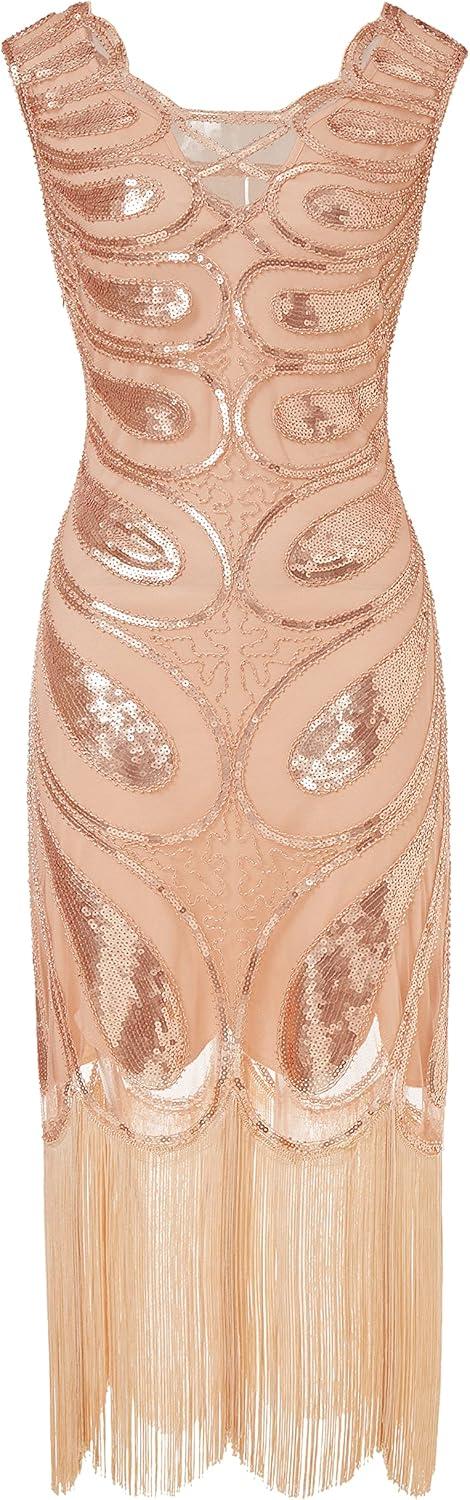 imageBABEYOND Womens 1920s Flapper Dress Art Deco Fringed Sequin Gatsby Costume Dress Pink XSXLRosegold