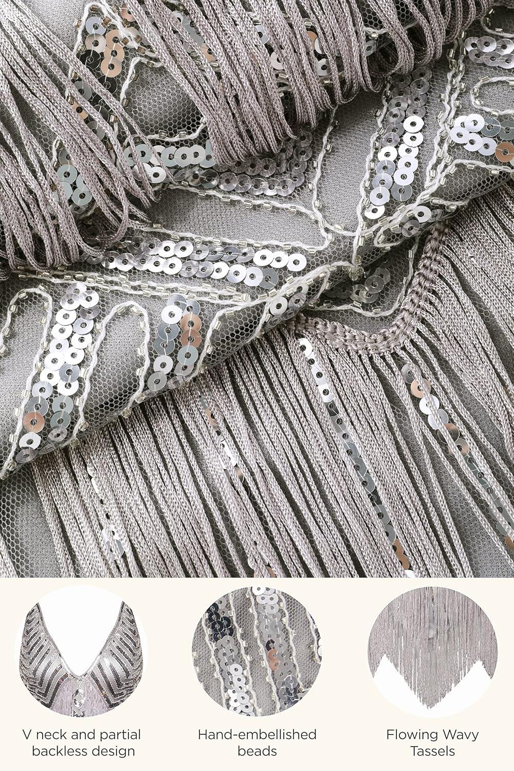 BABEYOND Women's 1920s Flapper Dress V Neck Slip Dress Roaring 20s Great Gatsby Dress for Party(Light Gray)